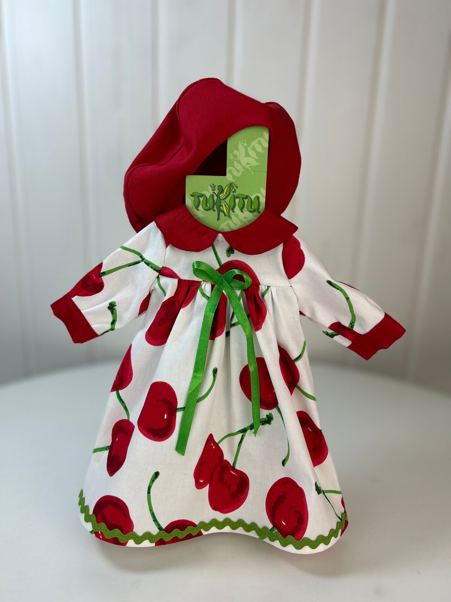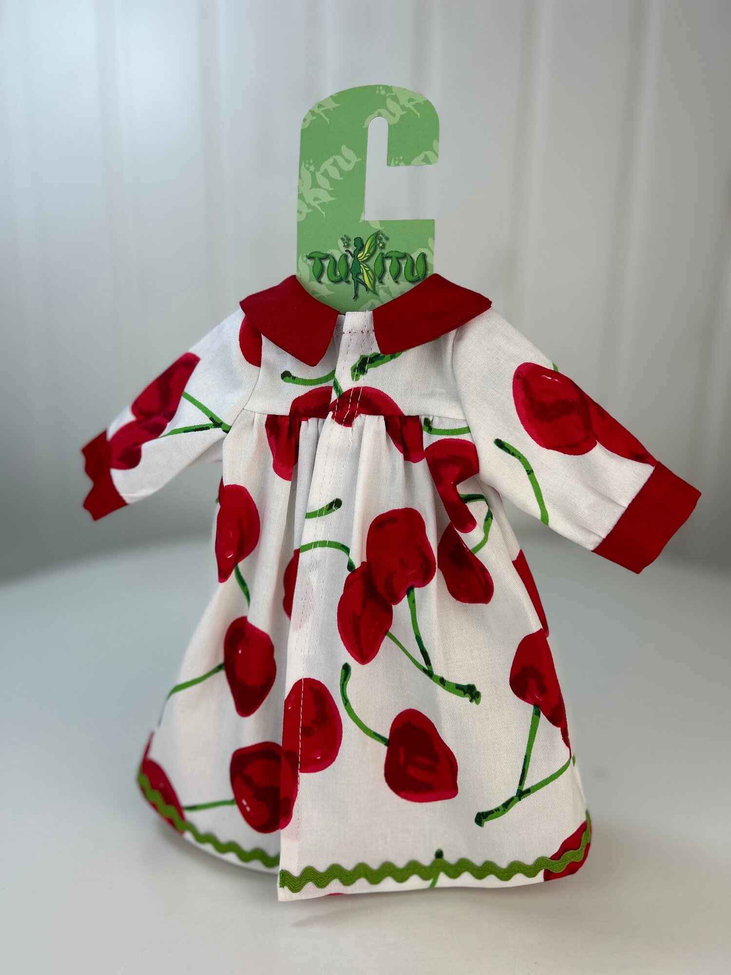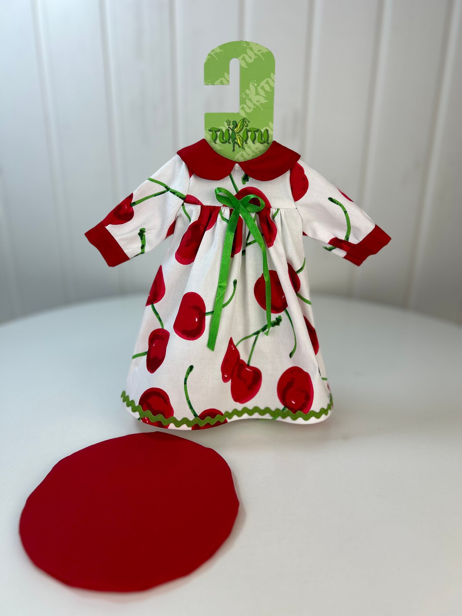 Комплект одежды для кукол 32-34 см: платье свободное "Вишневый сад", берет, арт. 32 интересное: