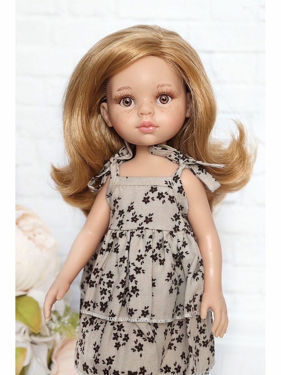 Одежда для кукол 32-35см Paola Reina, Vidal Rojas, Berjuan и др, Платье (волан) для кукол, темно-коричневый цветок, бежевый