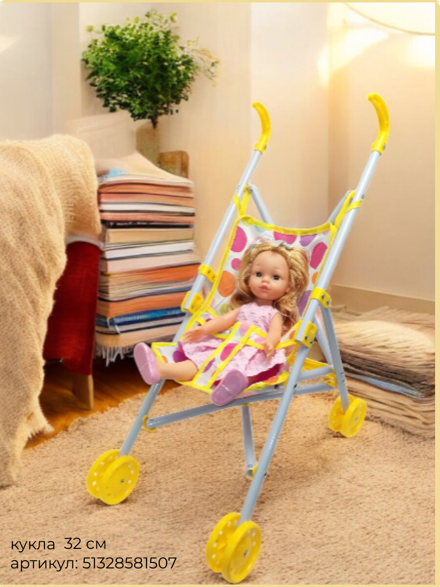 Коляска-трость для кукол, складная, желтая, 24 см x 40 см x 48 см интересное: