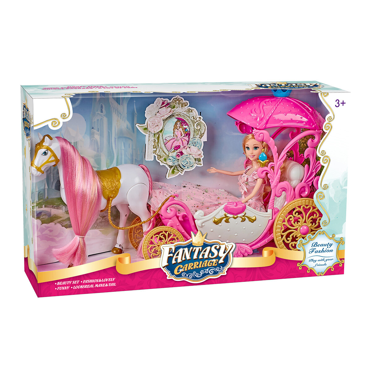 Карета с лошадкой Oubaoloon "Сказочный мир", с фигурками, в коробке (SS048A)