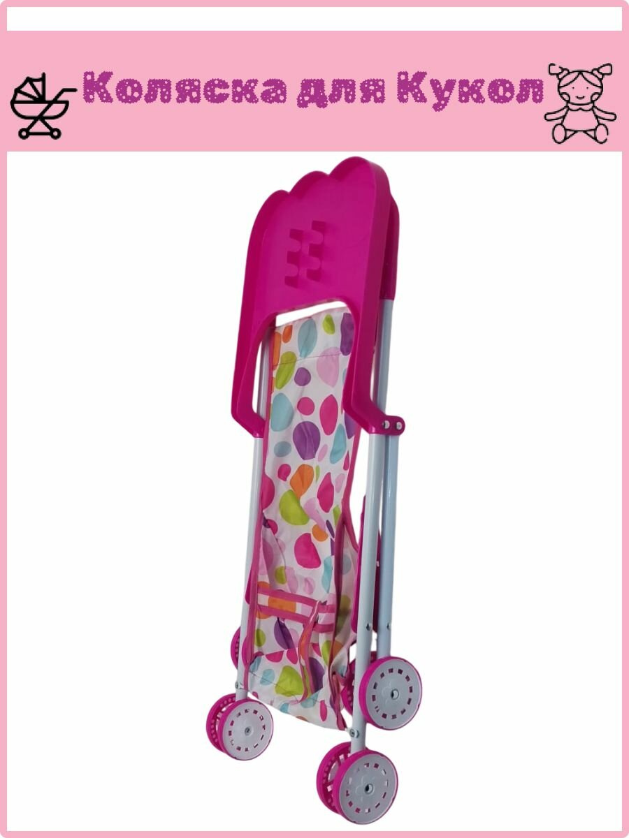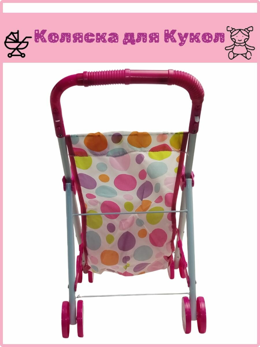 Коляска-трость для кукол, складной металлический каркас, с подсветкой, розовая, 25 см x 40 см x 44см интересное: