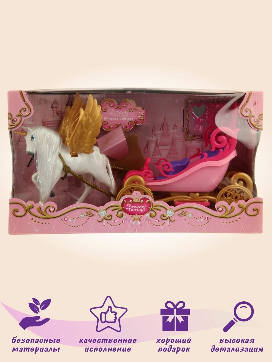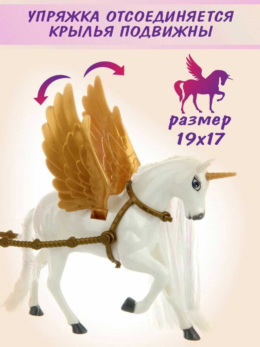 Карета с лошадью со светом и звуком, Veld Co / Фигурка лошадки с крыльями / Набор из 6 предметов интересное: