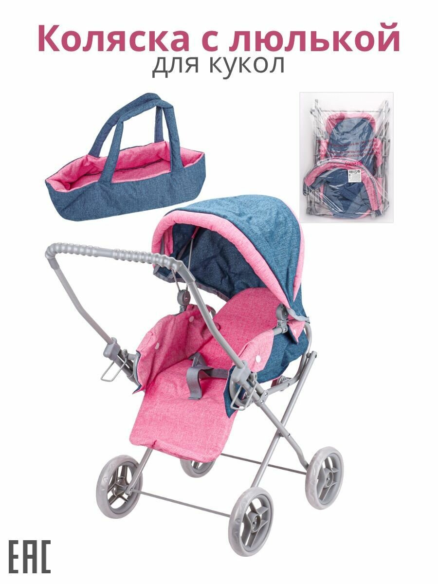 Купить Коляска для кукол с люлькой складная, синяя, розовая / Коляска для куклы