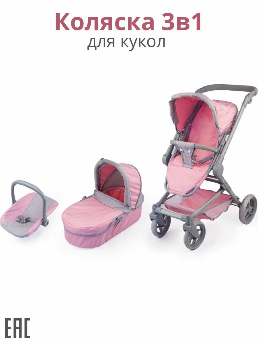 Купить Коляска для кукол 3в1, розовая / Детская коляска для кукол