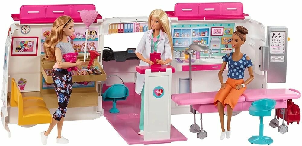 Купить Игрушечный транспорт Barbie - Мобильная клиника скорой помощи с трансформацией, светом и звуком - Барби FRM19