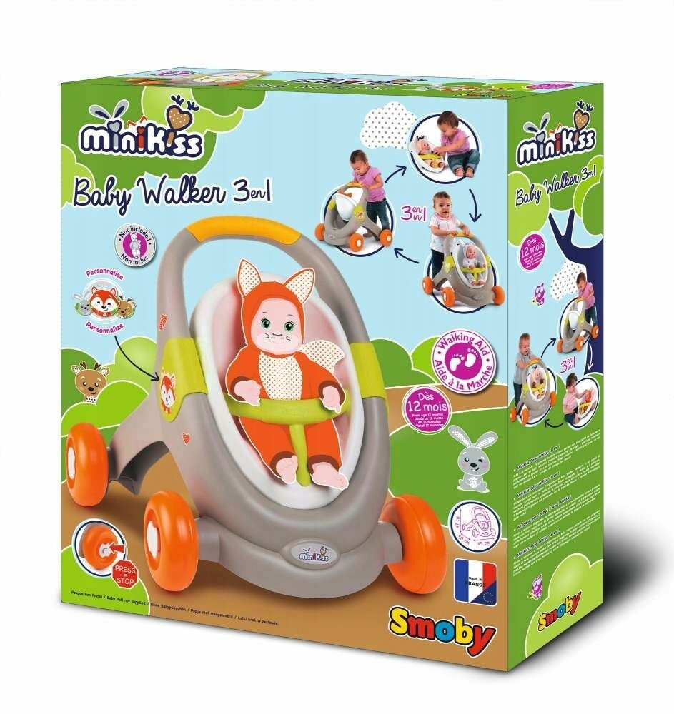 Коляска для кукол Smoby MiniKiss - Кукольная Прогулочная коляска Animal 3в1 210206 интересное: