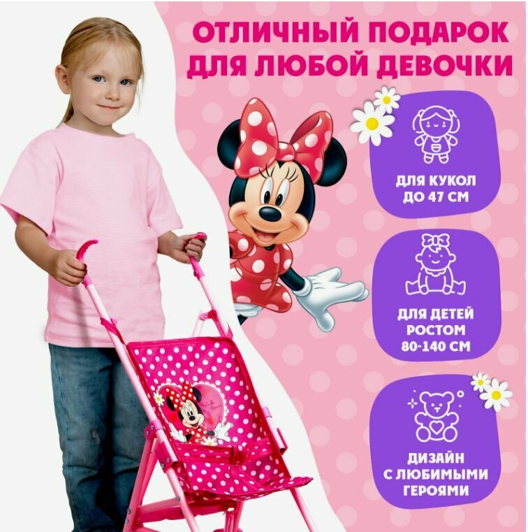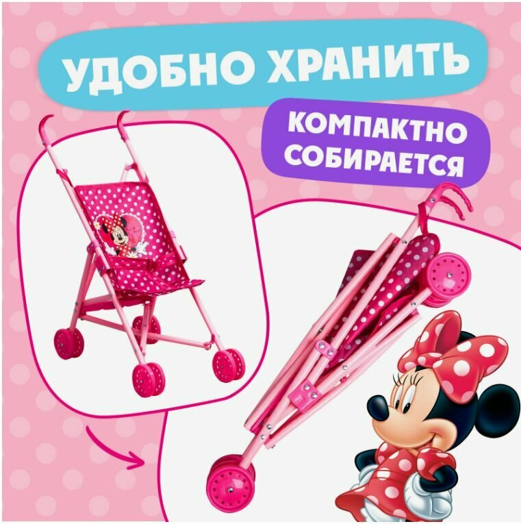 Коляска для кукол Disney Минни Маус, игрушки для девочек, розовая, высота 51 см интересное: