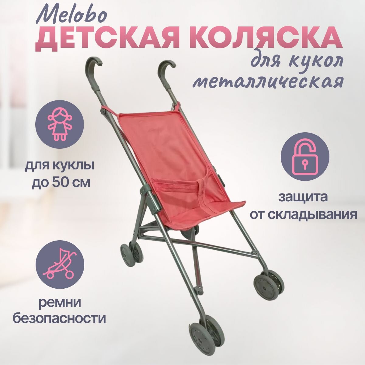 Коляска для кукол Melobo металлическая 52х26х55 см, сидячая средняя трость интересное: