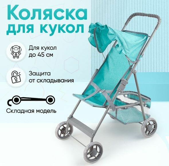 Коляска - трость для кукол Melobo Buggy Boom Mixy, бирюзовая, 65 x 29 x 60 см интересное: