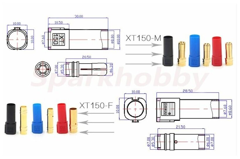 Разъем силовой для робототехники XT150 (3 пары) интересное: