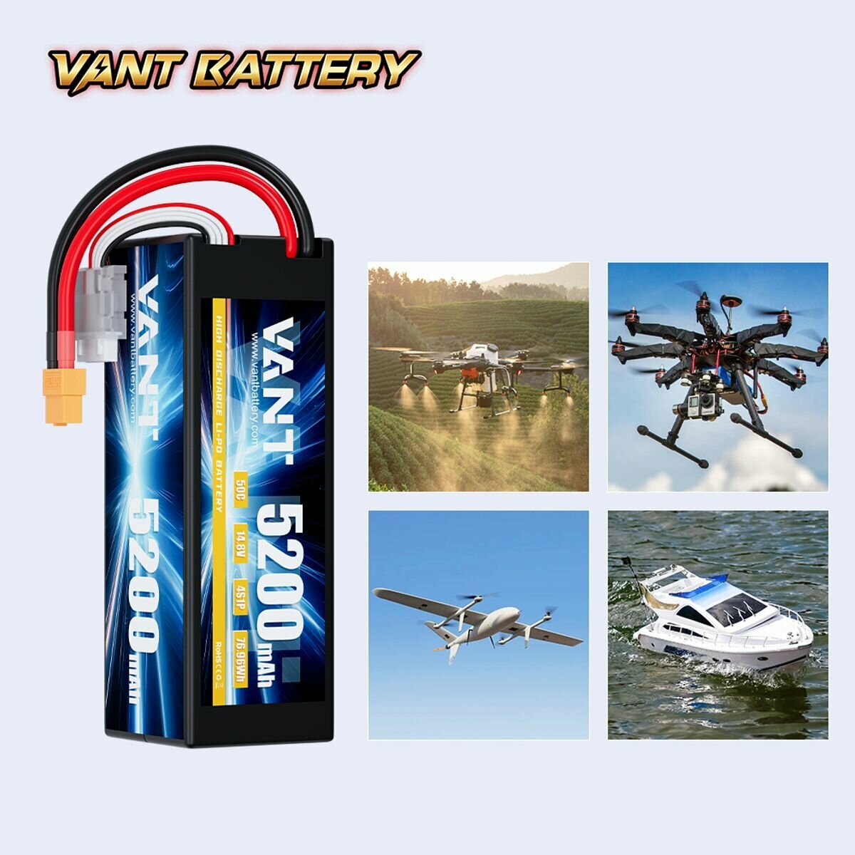 Аккумулятор LiPo Vant - 14.8В 5200мАч 50C (4S, Hardcase, разъём XT60) интересное: