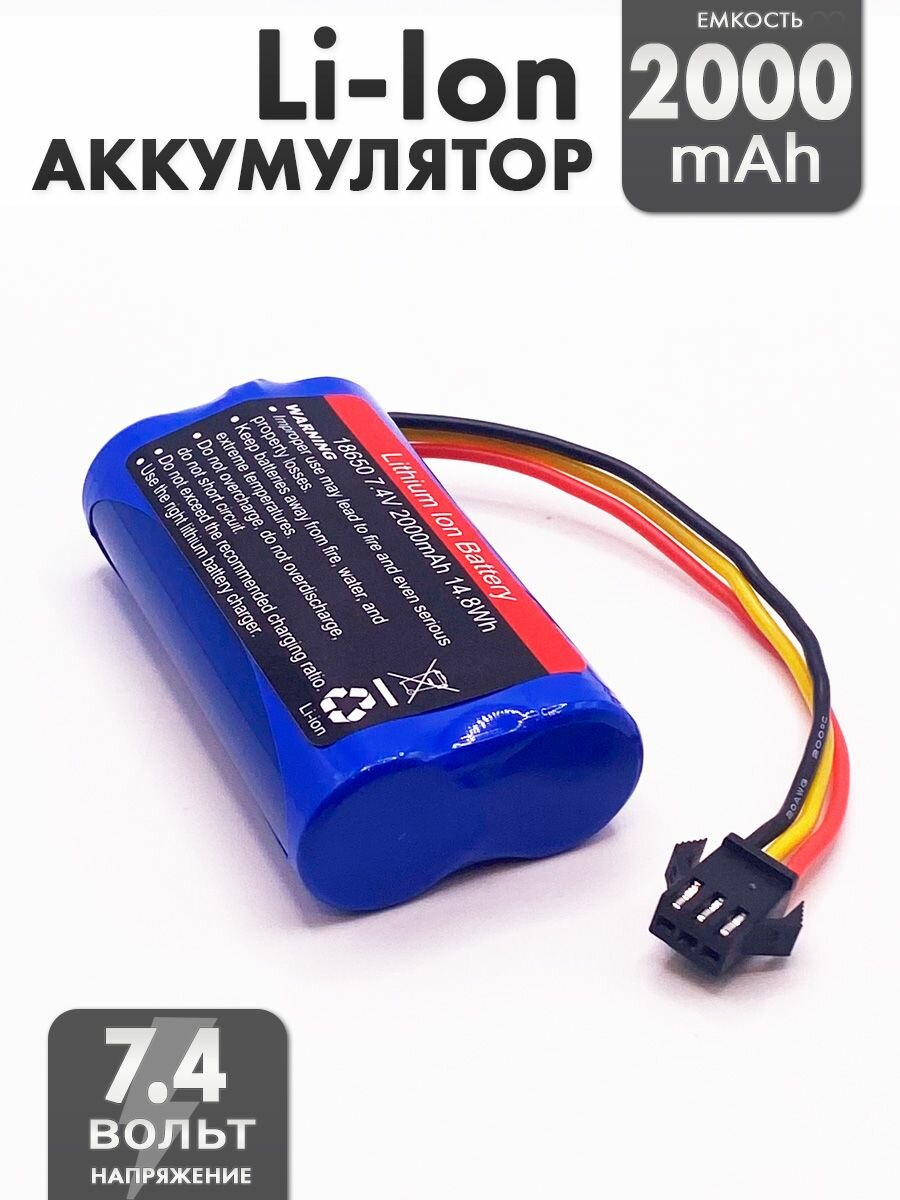 Купить Аккумулятор 7.4V 18650 Li-Ion 2000mAh разъем SM-3P
