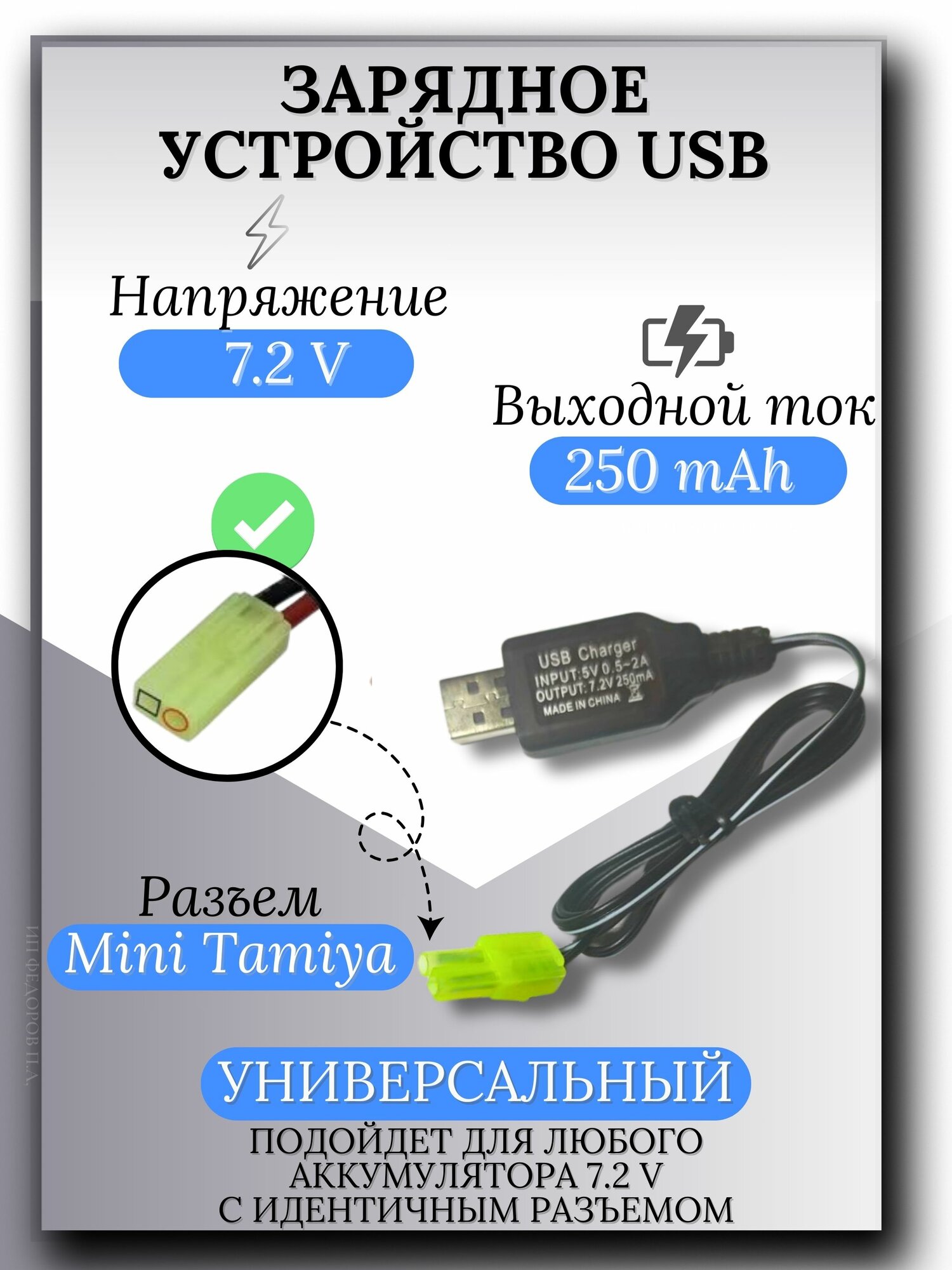 Купить Зарядное устройство для аккумуляторов USB 7.2V, разъём mini tamiya