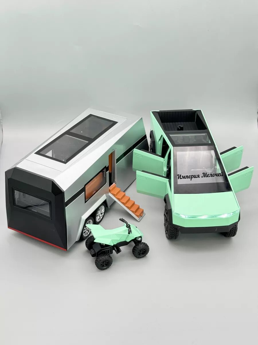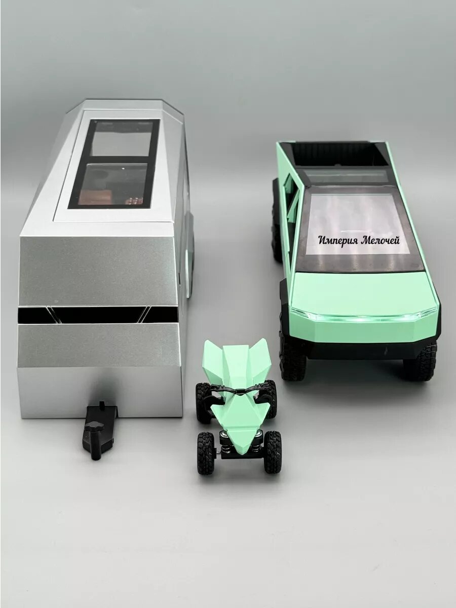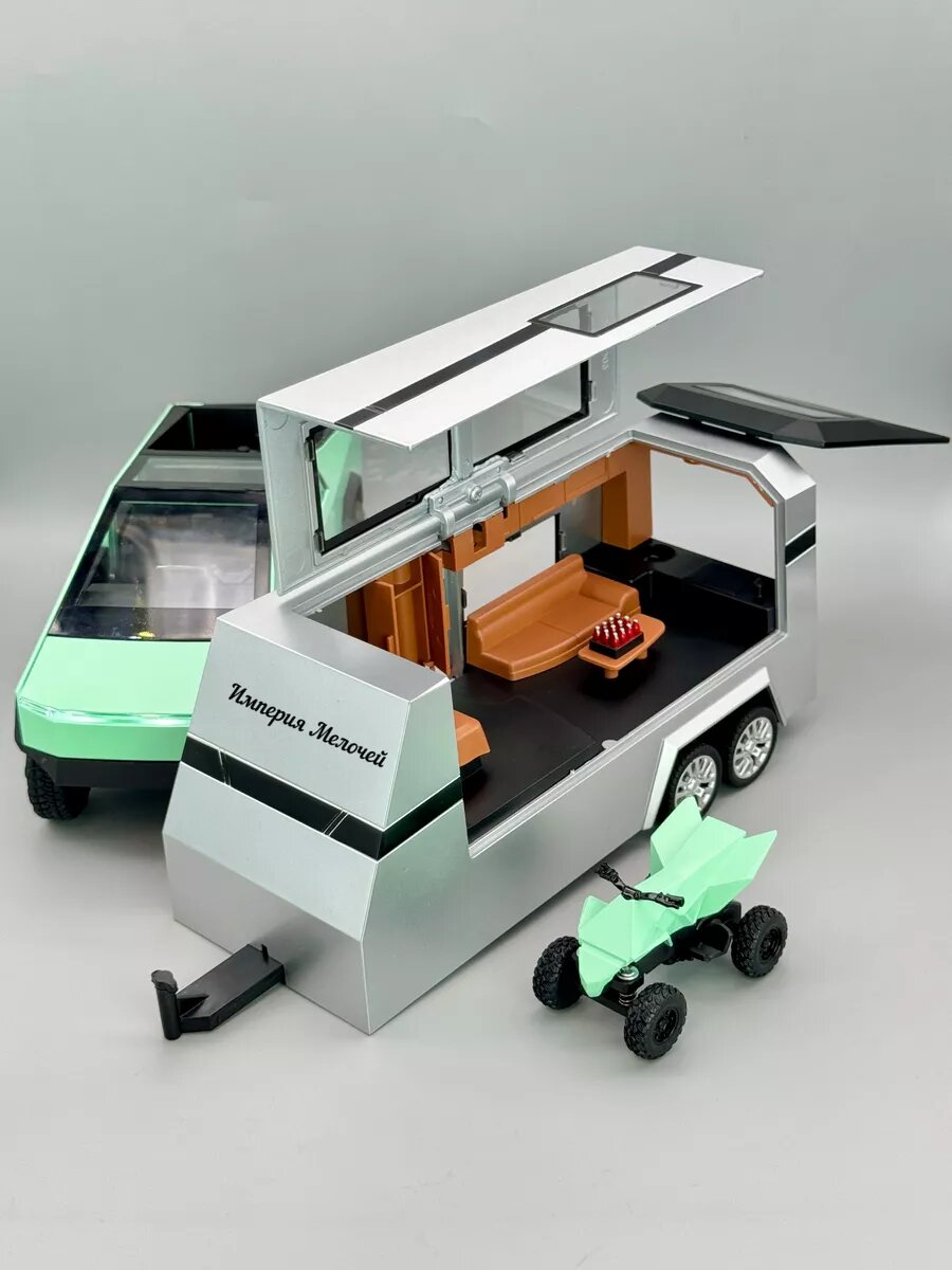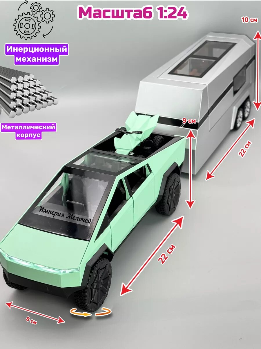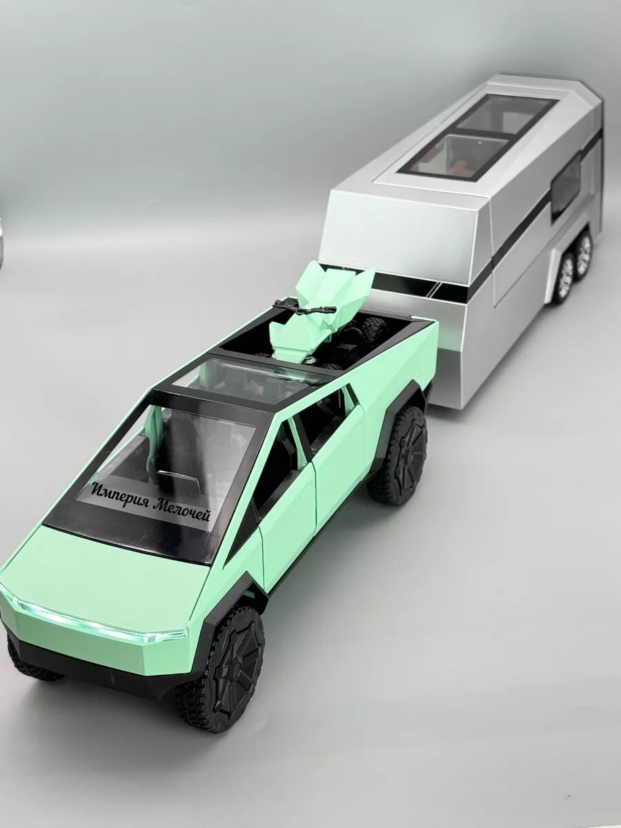 Игрушечный автомобиль Империя Мелочей Tesla Cybertruck, масштаб 1:24, с трейлером, инерционный