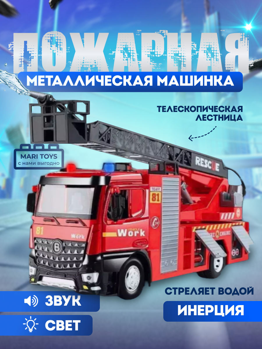 Машинка пожарная спецтехника для детей стреляет водой металл пластик красная от MARI TOYS интересное: