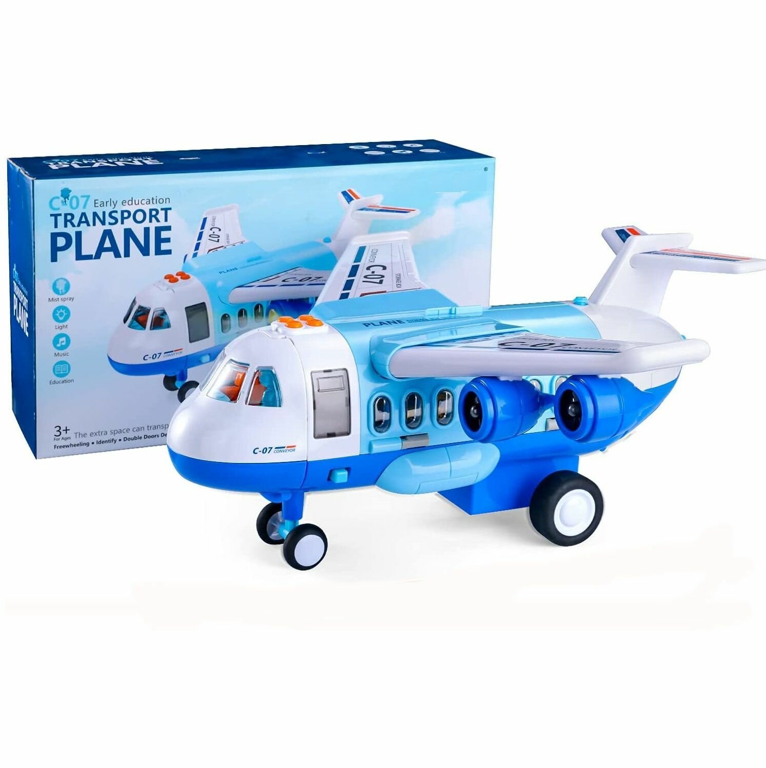 Купить Большой инерционный самолет 39 х 38 х 19 см с паром, в комплекте 6 машин, дорожные знаки, свет, звук