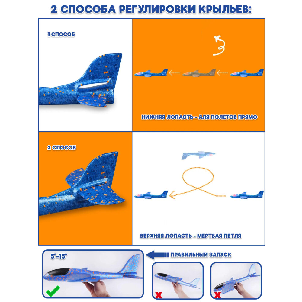 Детская игрушка пенопластовый самолет планер 46.5 см с LED подсветкой 10 ламп, 4 цвета, XYK121 интересное: