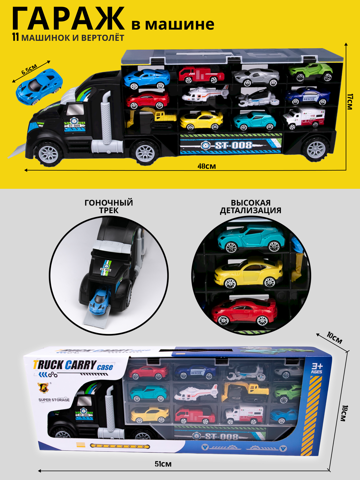 Игровой набор для мальчика Автовоз Junfa toys с 11 гоночными машинками и вертолетом, парковка гараж для машинок интересное: