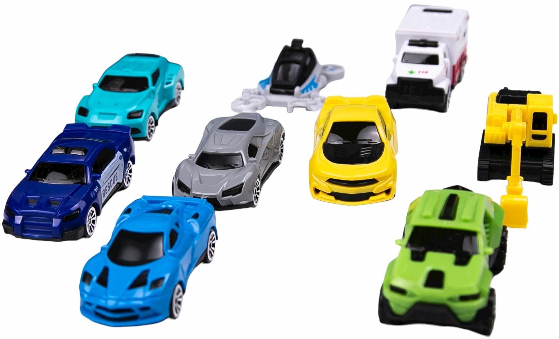 Купить Игровой набор для мальчика Автовоз Junfa toys с 11 гоночными машинками и вертолетом, парковка гараж для машинок