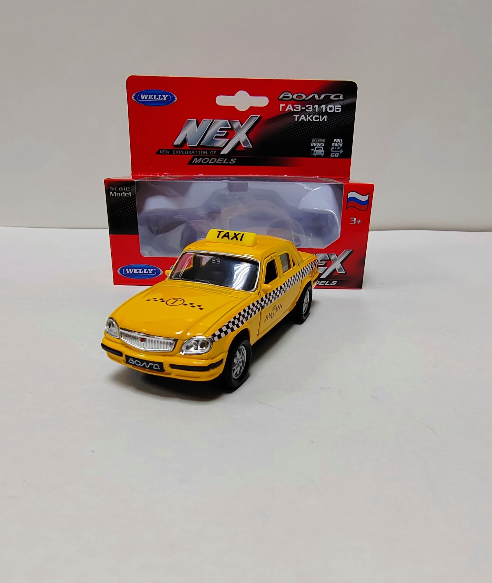 Модель Welly ГАЗ 31105 Волга Такси желтый, 12 см, инерц. механизм. интересное: