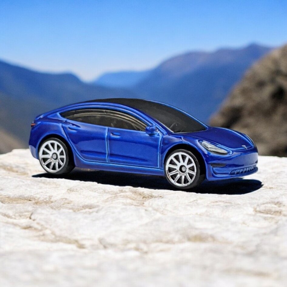 Купить Машинка Hot Wheels Tesla Model 3 Blue, коллекционная 1/64 длина 7 см