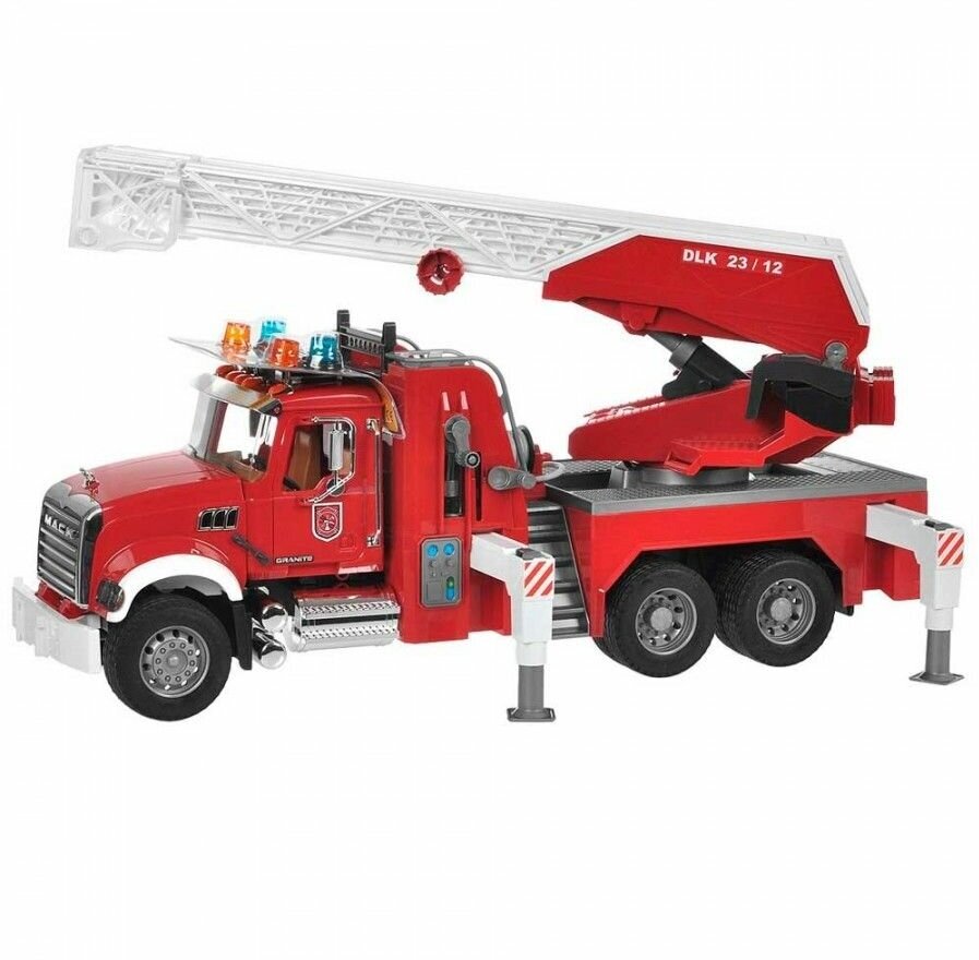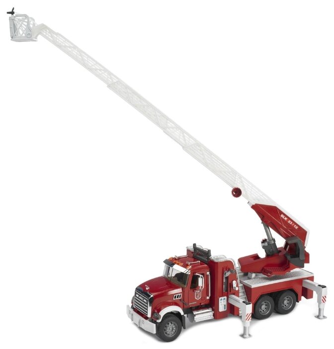 Пожарный автомобиль Bruder Mack с выдвижной лестницей и помпой (02-821) 1:16, 63 см, красный/белый интересное: