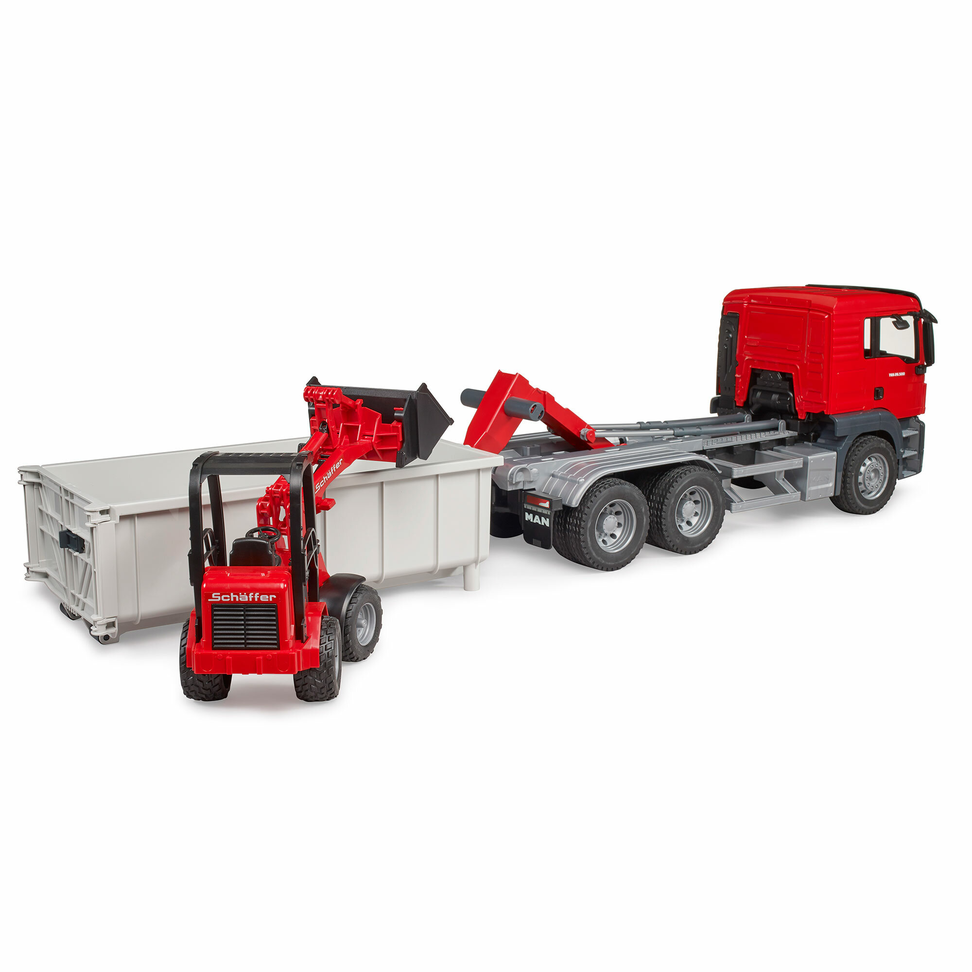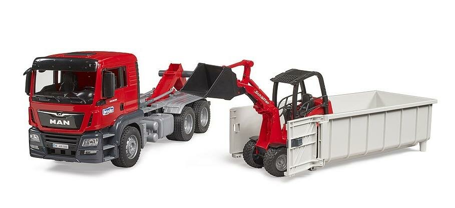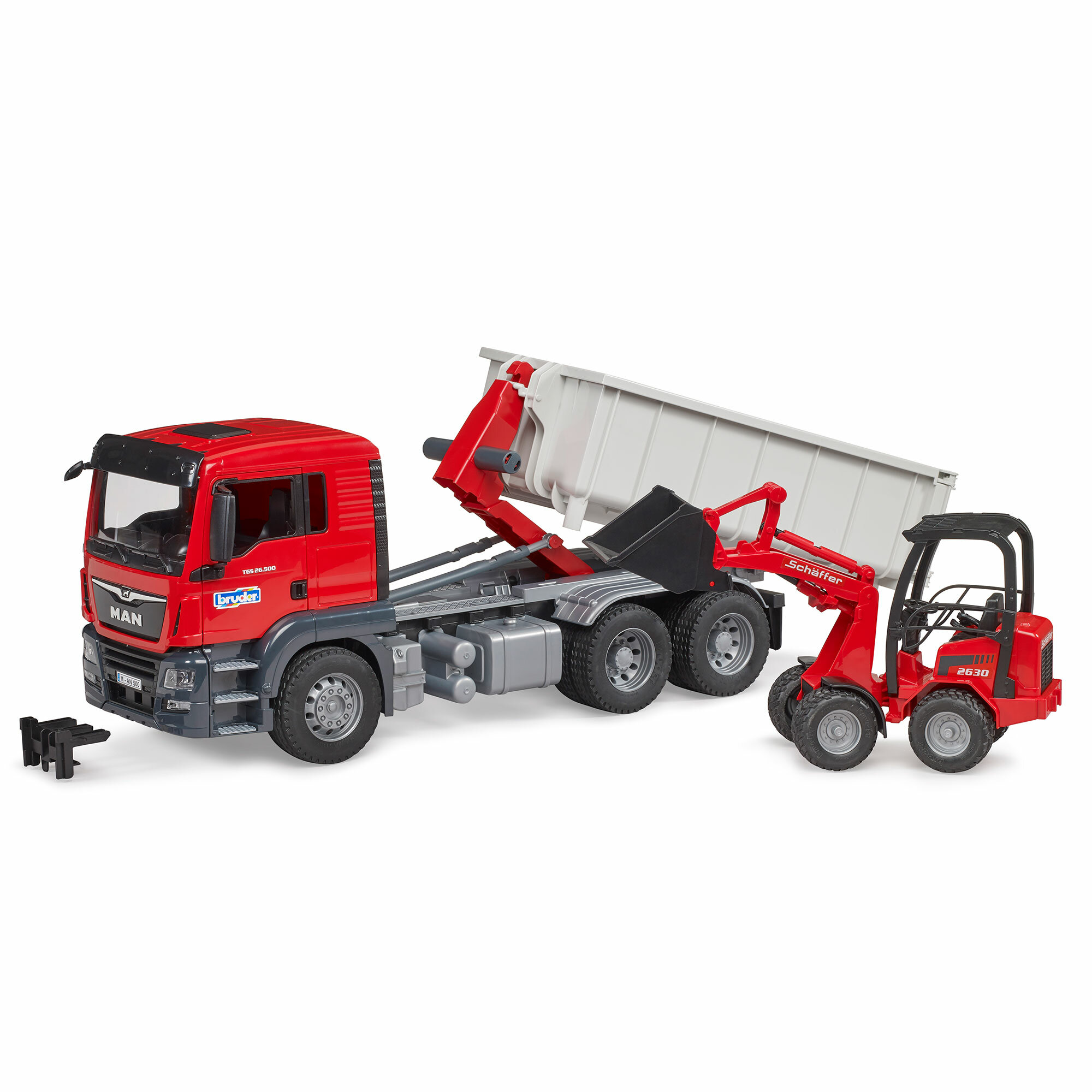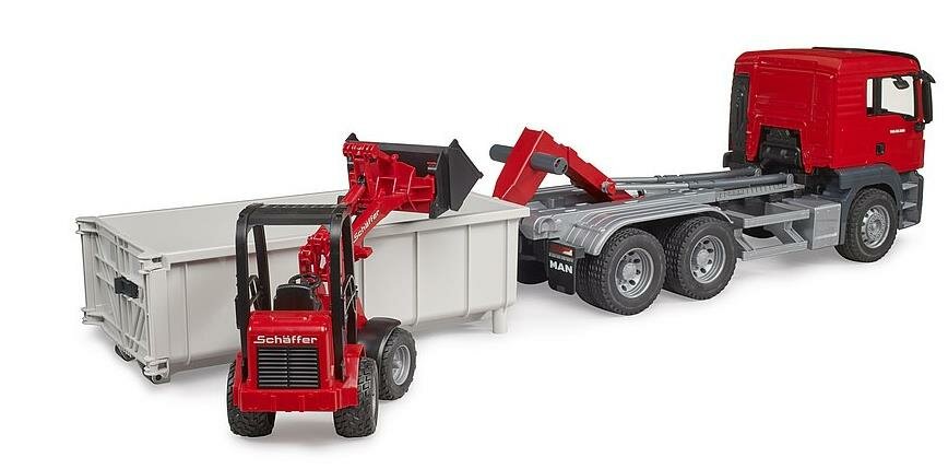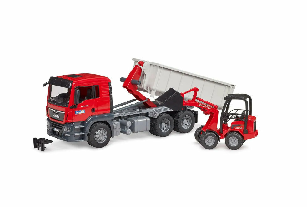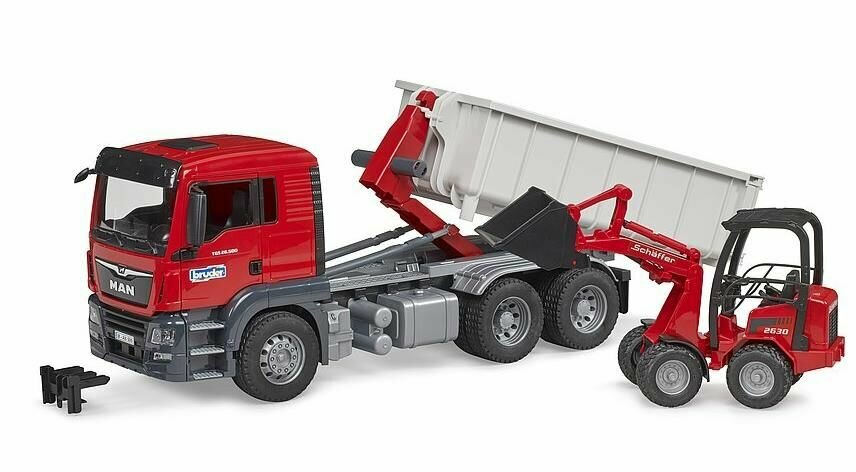 Машинка-самосвал Bruder MAN с погрузчиком 03767, красный/серый интересное: