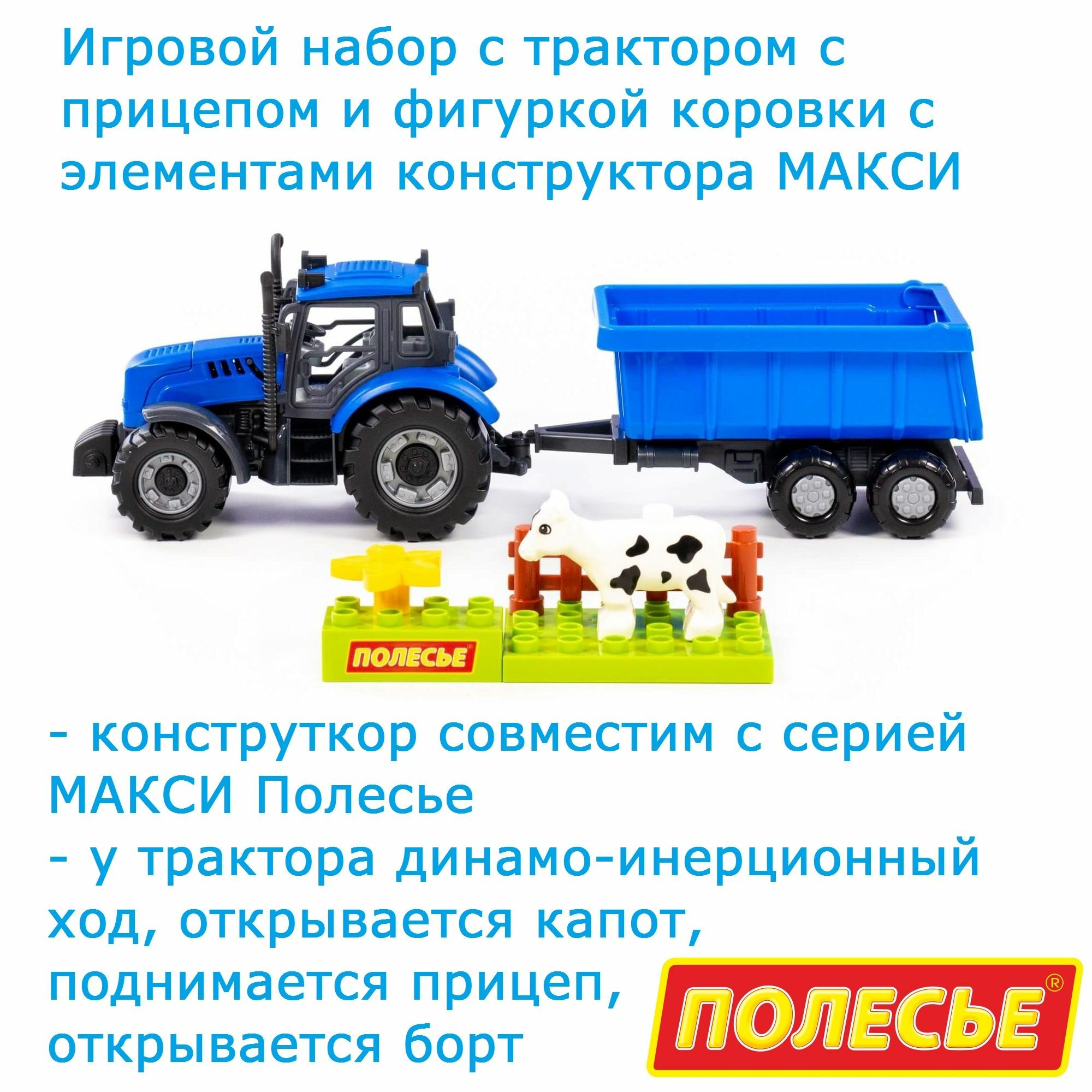 Инерционный трактор 37 см с прицепом-кузовом и фигуркой коровки / Полесье - синий интересное: