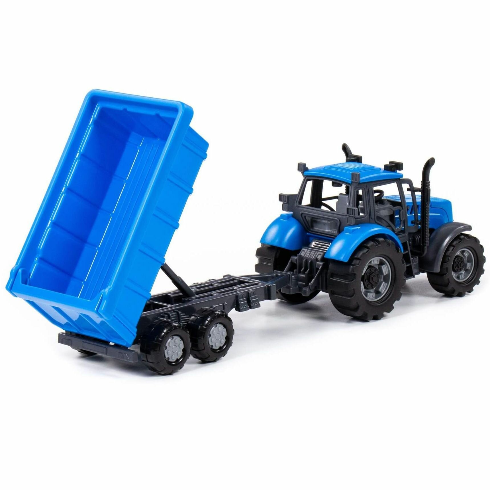 Инерционный трактор 37 см с прицепом-кузовом и фигуркой коровки / Полесье - синий