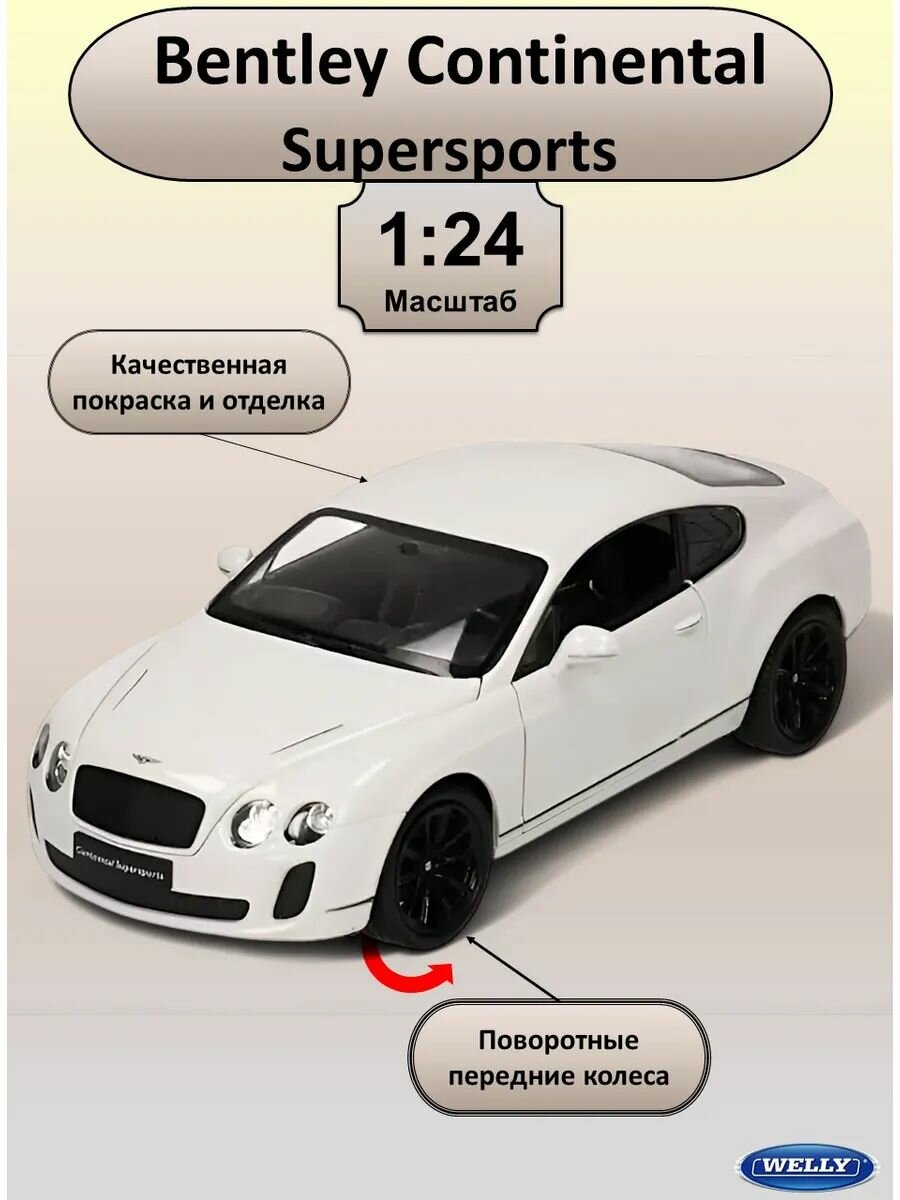 Купить WELLY машинка металлическая коллекционная масштабная модель 1:24 Bentley Continental Supersports белый