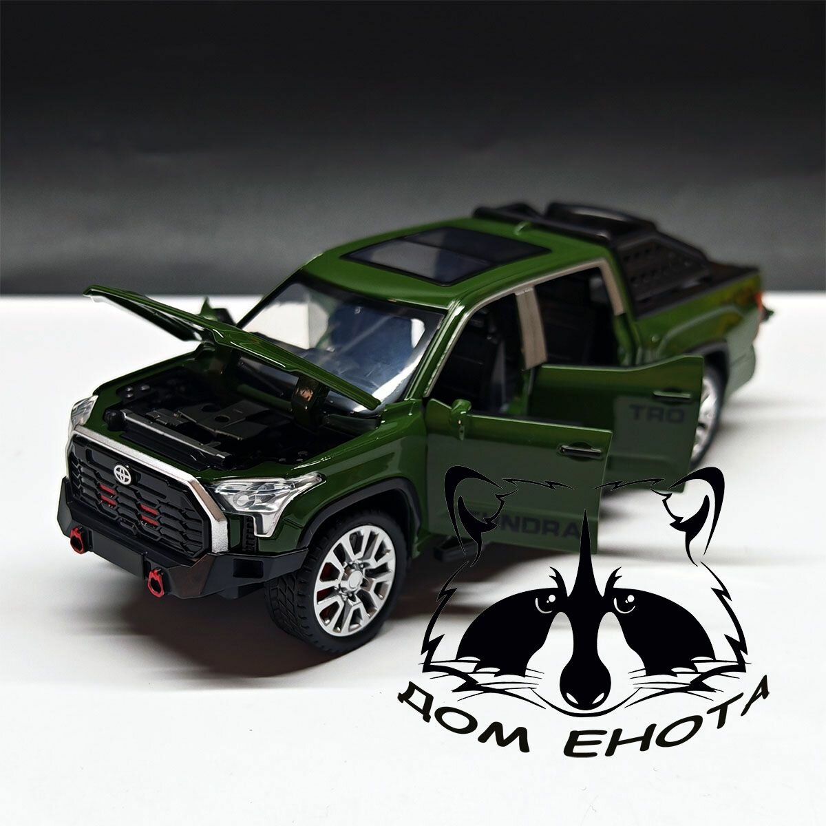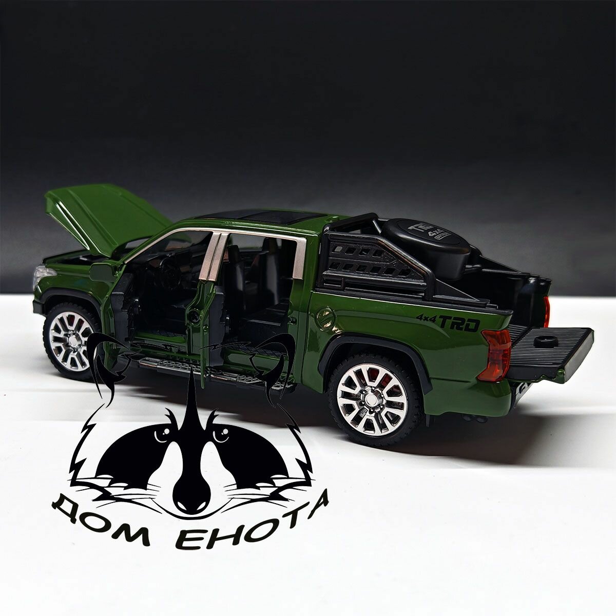 Машинка Toyota Tundra. Металлическая модель автомобиля Тойота Тундра зеленый 17см. Инерционная игрушка машина 1:32 интересное: