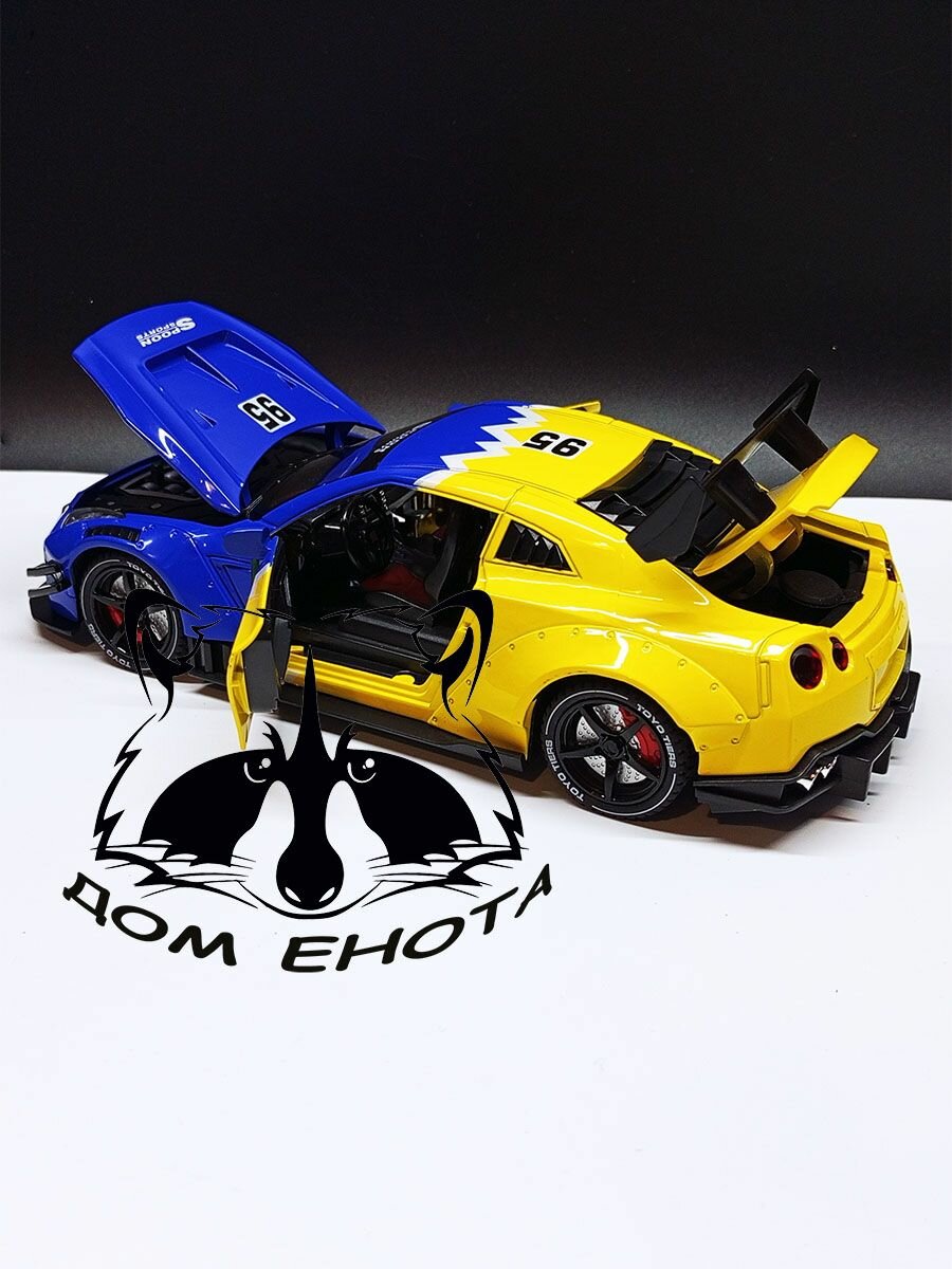 СохранитьМашинка Nissan GT-R. Металлическая модель автомобиля Ниссан GTR сине-желтый 20см. Инерционная игрушка машина 1:24 интересное: