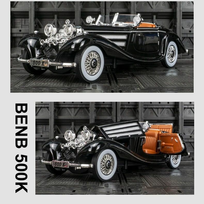Купить Машинка Мерседес 500К ретро. Металлическая модель автомобиля Mercedes 500K черный. Инерционная игрушка машина 1:24