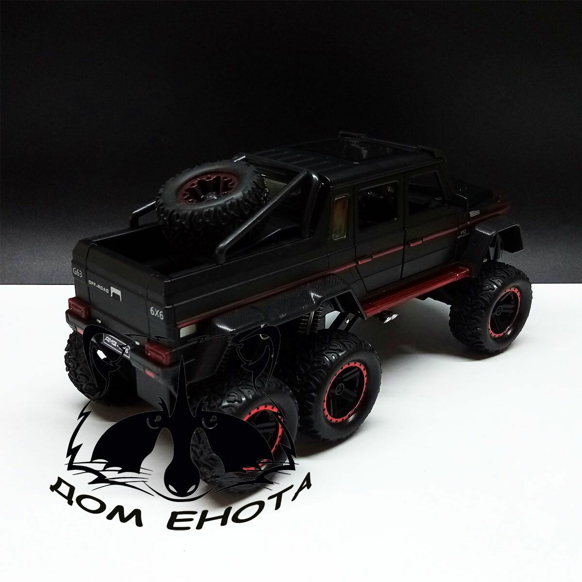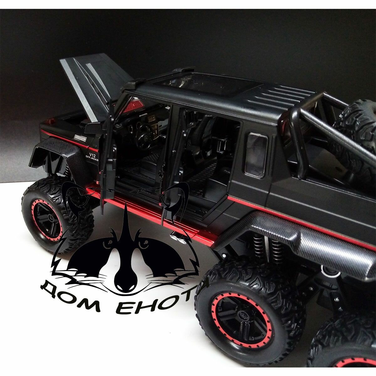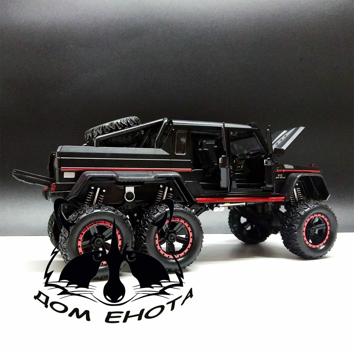 Купить Машинка Мерседес Гелик AMG 6 колес. Модель автомобиля Mercedes Gelendwagen G63 6X6 Offroad черный 24см. Инерционная игрушка машина 1:24