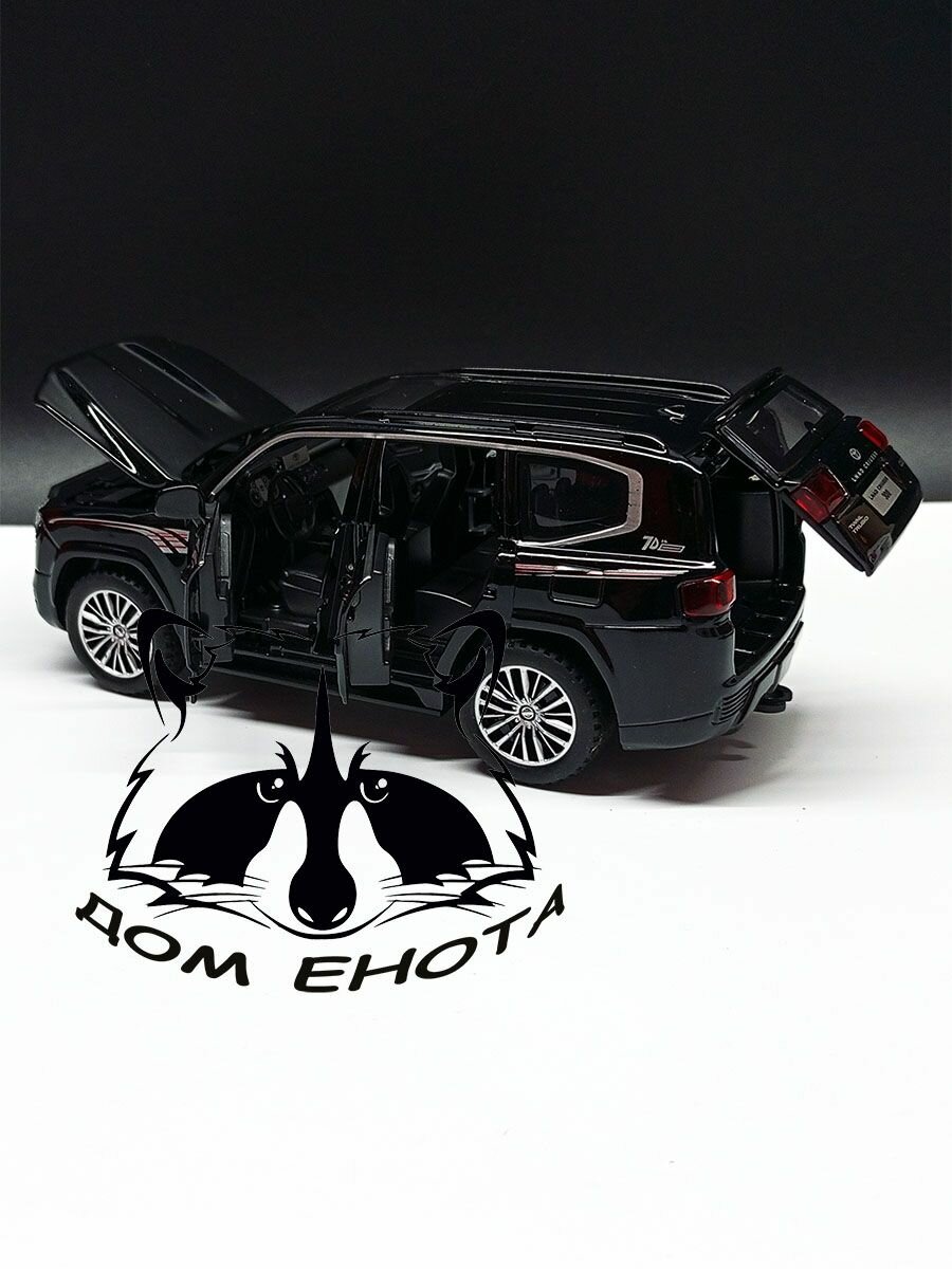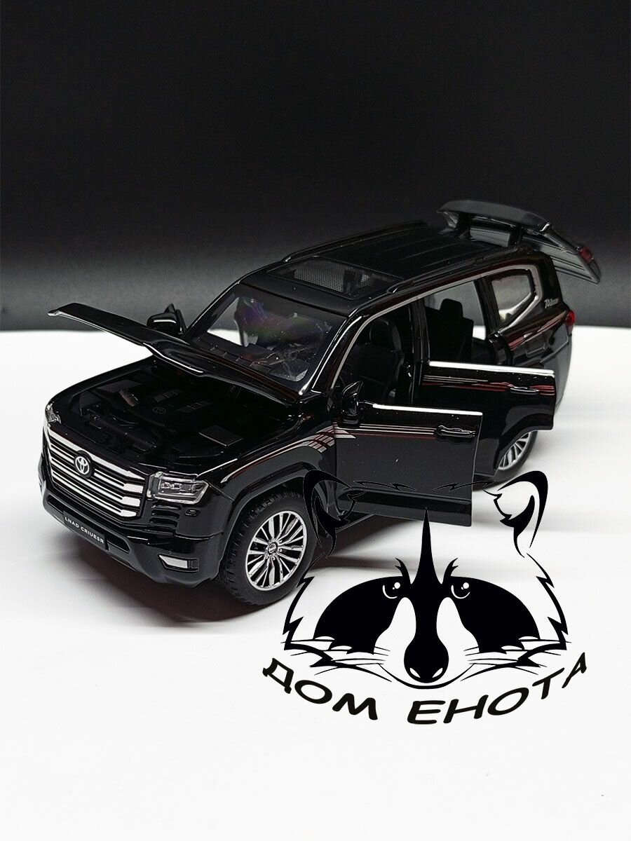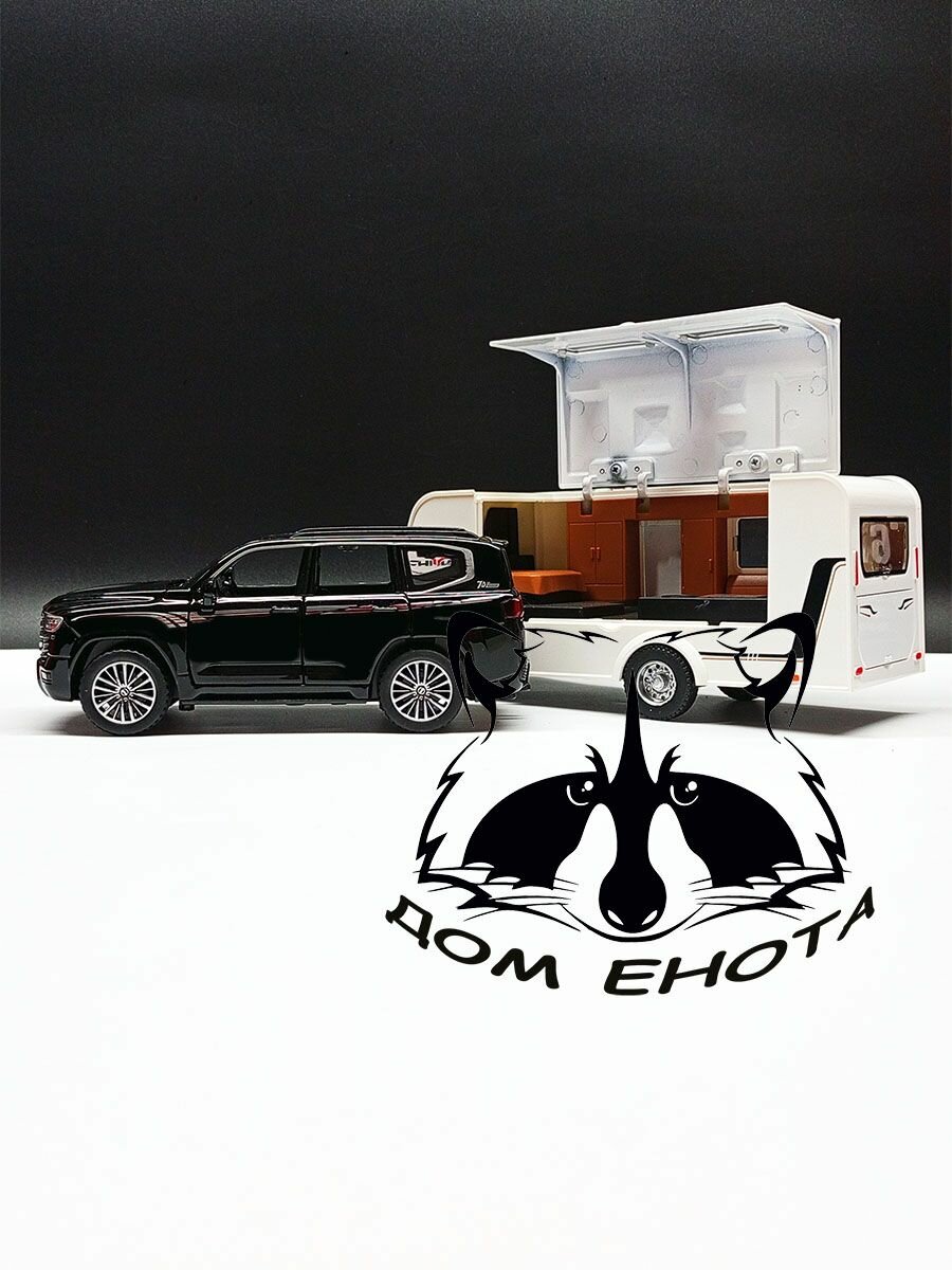 СохранитьМашинка Toyota Land Cruiser 300 с прицепом. Металлическая модель автомобиля Тойота Ланд Крузер 300 дом на колесах. Черный. Игрушка автомобиль 1:32 интересное:
