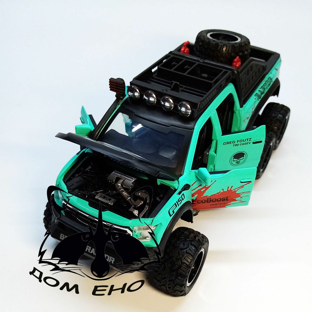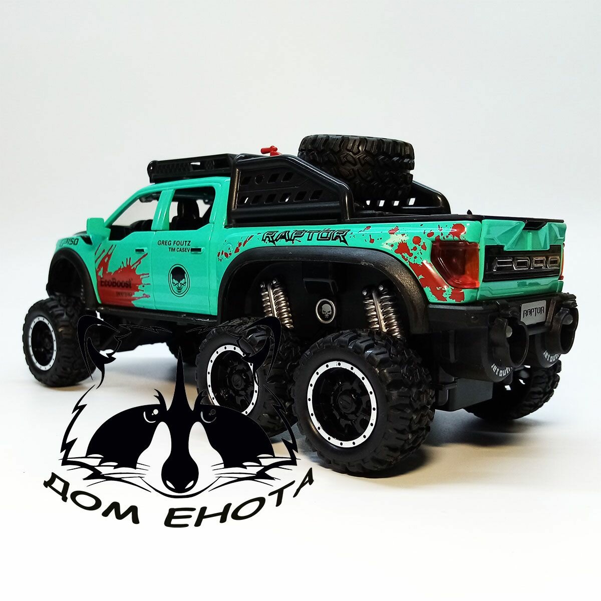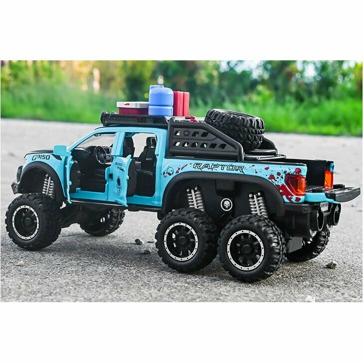 Купить Машинка Форд Раптор с дымом. Металлическая модель автомобиля Ford Raptor внедорожник 6х6 зеленый 21см. Инерционная игрушка машина 1:28