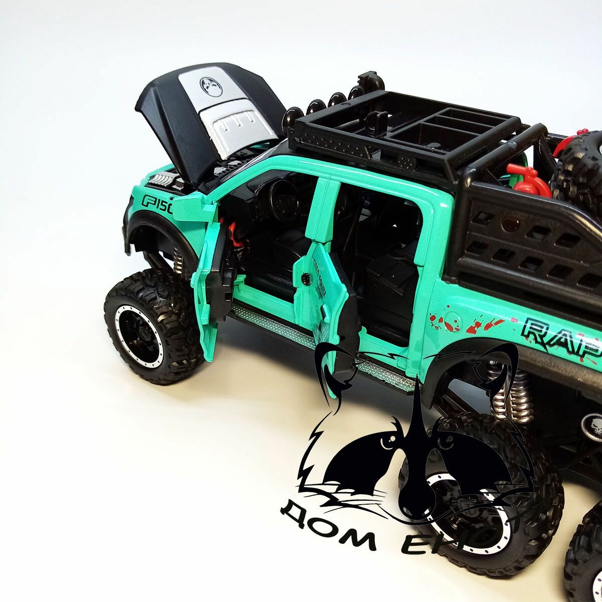 СохранитьМашинка Форд Раптор с дымом. Металлическая модель автомобиля Ford Raptor внедорожник 6х6 зеленый 21см. Инерционная игрушка машина 1:28 интересное: