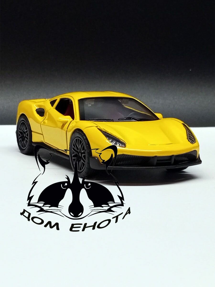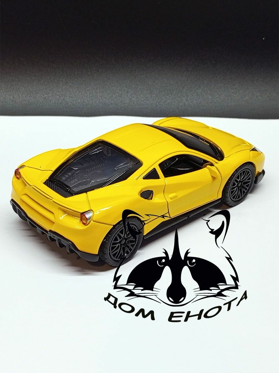 Купить Машинка Ferrari 488 Металлическая модель автомобиля Феррари 488 желтый 12см. Инерционная игрушка машина 1:40