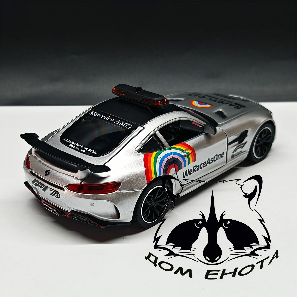 СохранитьМашинка Mercedes AMG GT Safety Car F1. Металлическая модель автомобиля Мерседес АМГ 20см. серебро. Инерционная игрушка машина 1:24 интересное: