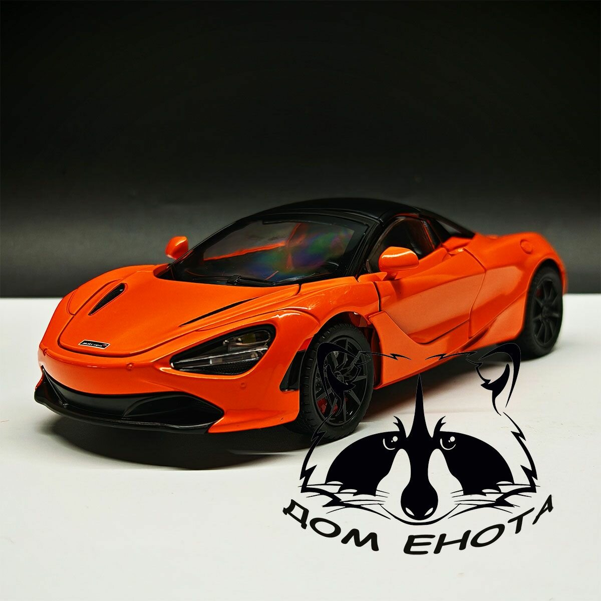 Купить Машинка McLaren 720S. Металлическая модель автомобиля Макларен 720 оранжевый 20см. Инерционная игрушка машина 1:23