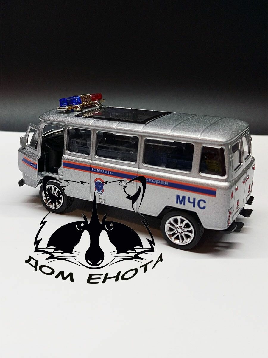 СохранитьМашинка УАЗ Буханка МЧС. Металлическая модель автомобиля UAZ серебро 10см. Игрушечная машина интересное: