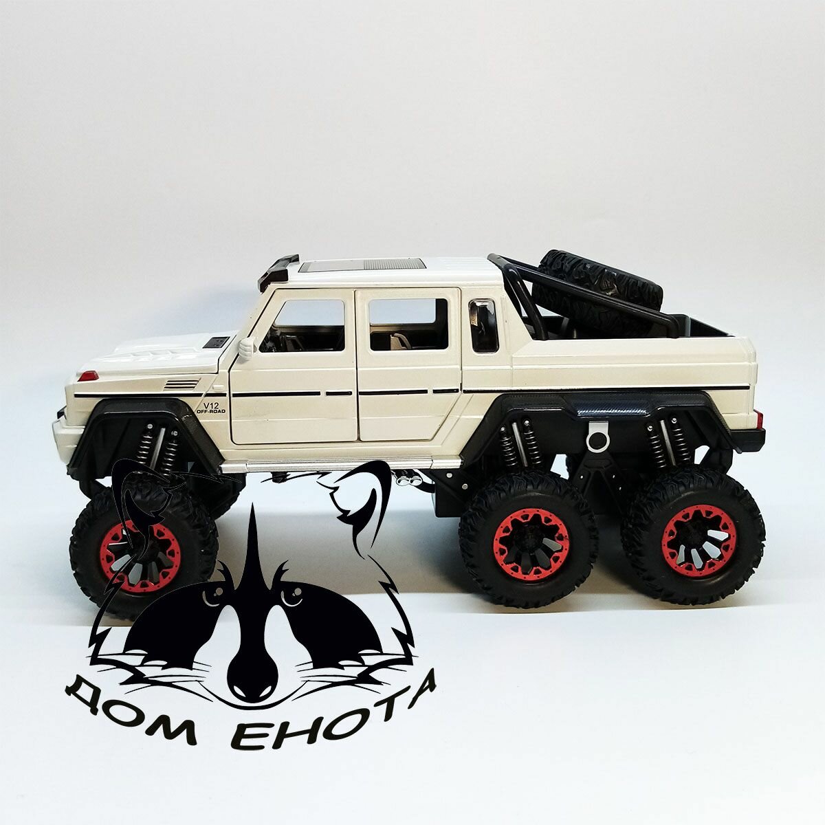 Купить Машинка Мерседес Гелик AMG 6 колес. Модель автомобиля Mercedes Gelendwagen G63 6X6 Offroad белый 24см. Инерционная игрушка машина 1:24