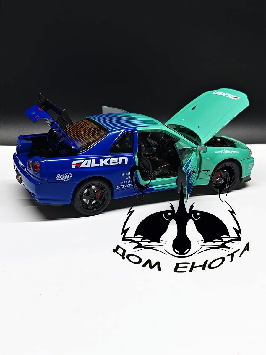 СохранитьМашинка Nissan Skyline. Металлическая модель автомобиля Ниссан Скайлайн сине-зеленый 21см. Инерционная игрушка машина 1:24 интересное: