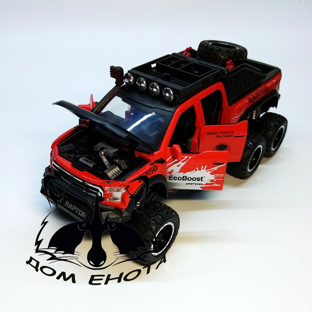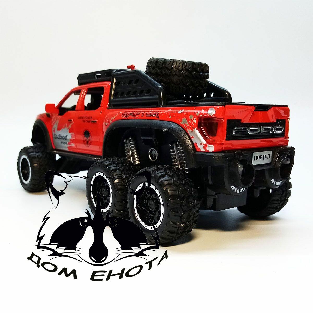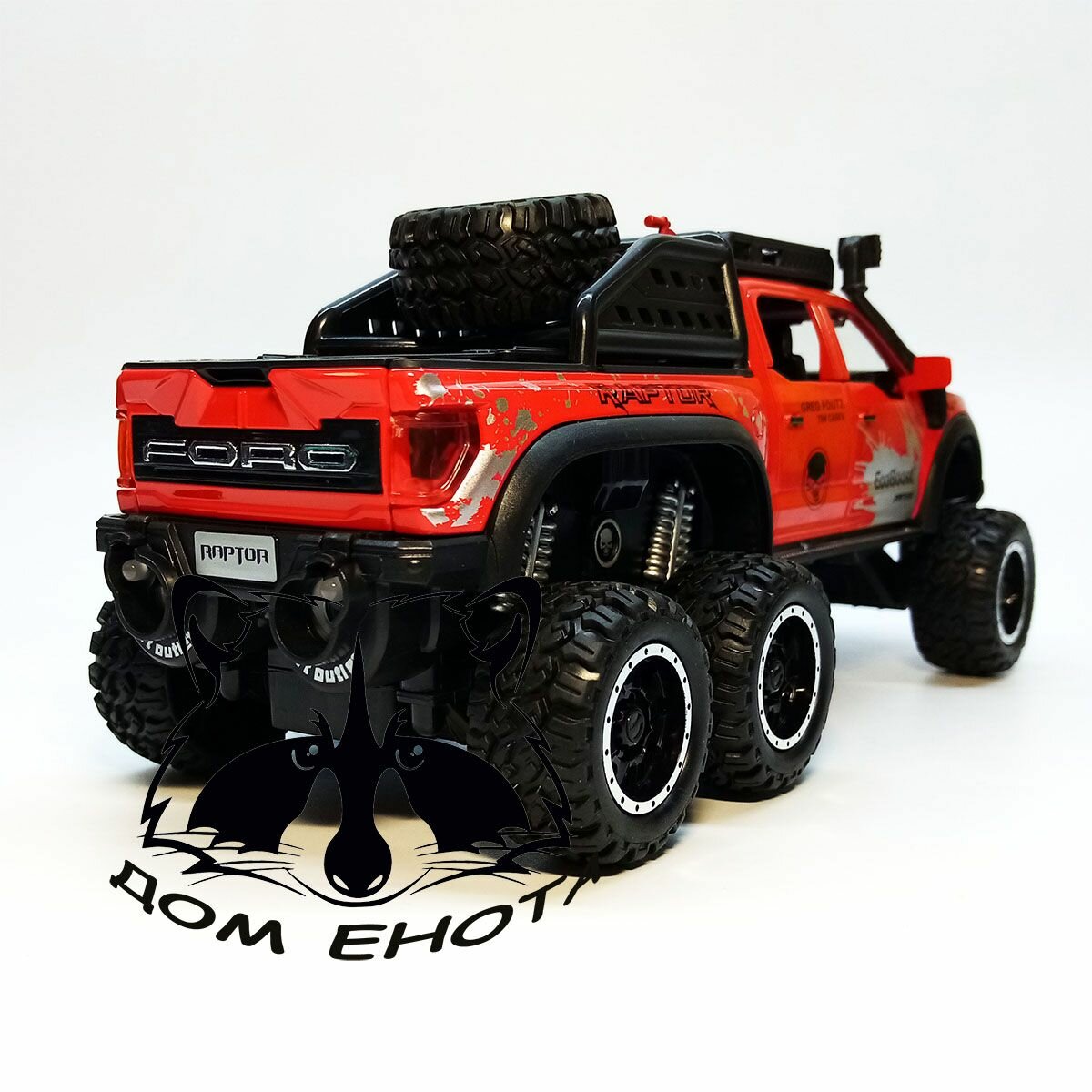 Купить Машинка Форд Раптор с дымом. Металлическая модель автомобиля Ford Raptor внедорожник 6х6 красный 21см. Инерционная игрушка машина 1:24