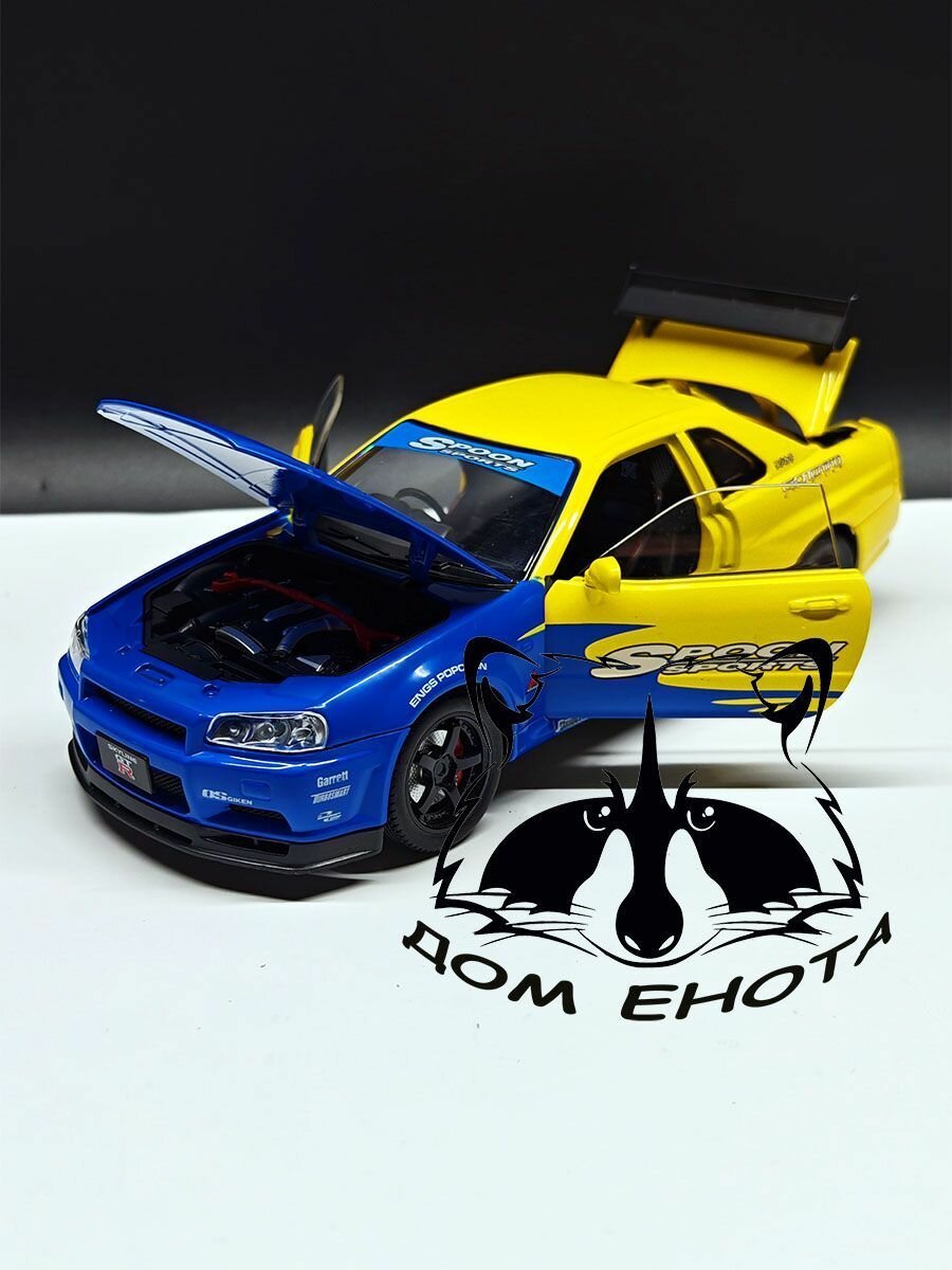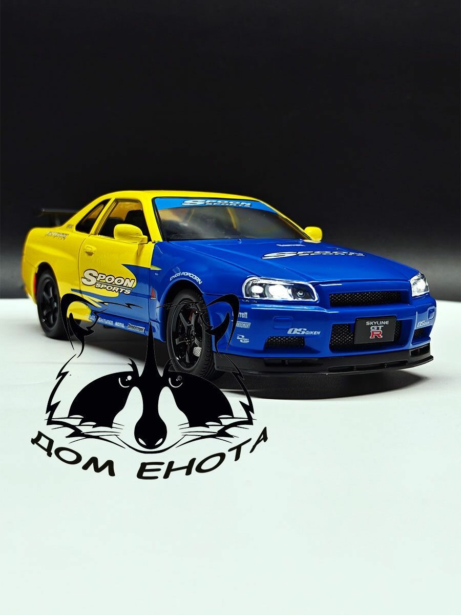 СохранитьМашинка Nissan Skyline. Металлическая модель автомобиля Ниссан Скайлайн желто-синий 21см. Инерционная игрушка машина 1:24 интересное: