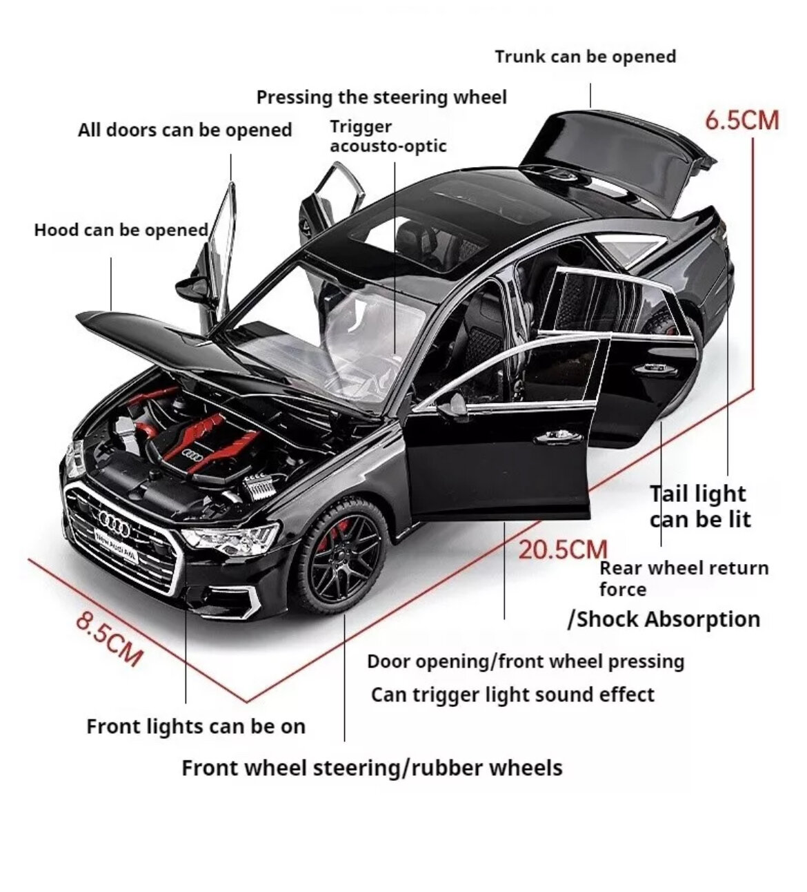Коллекционная масштабная модель Audi A6L 1:24 (металл, свет, звук) интересное: