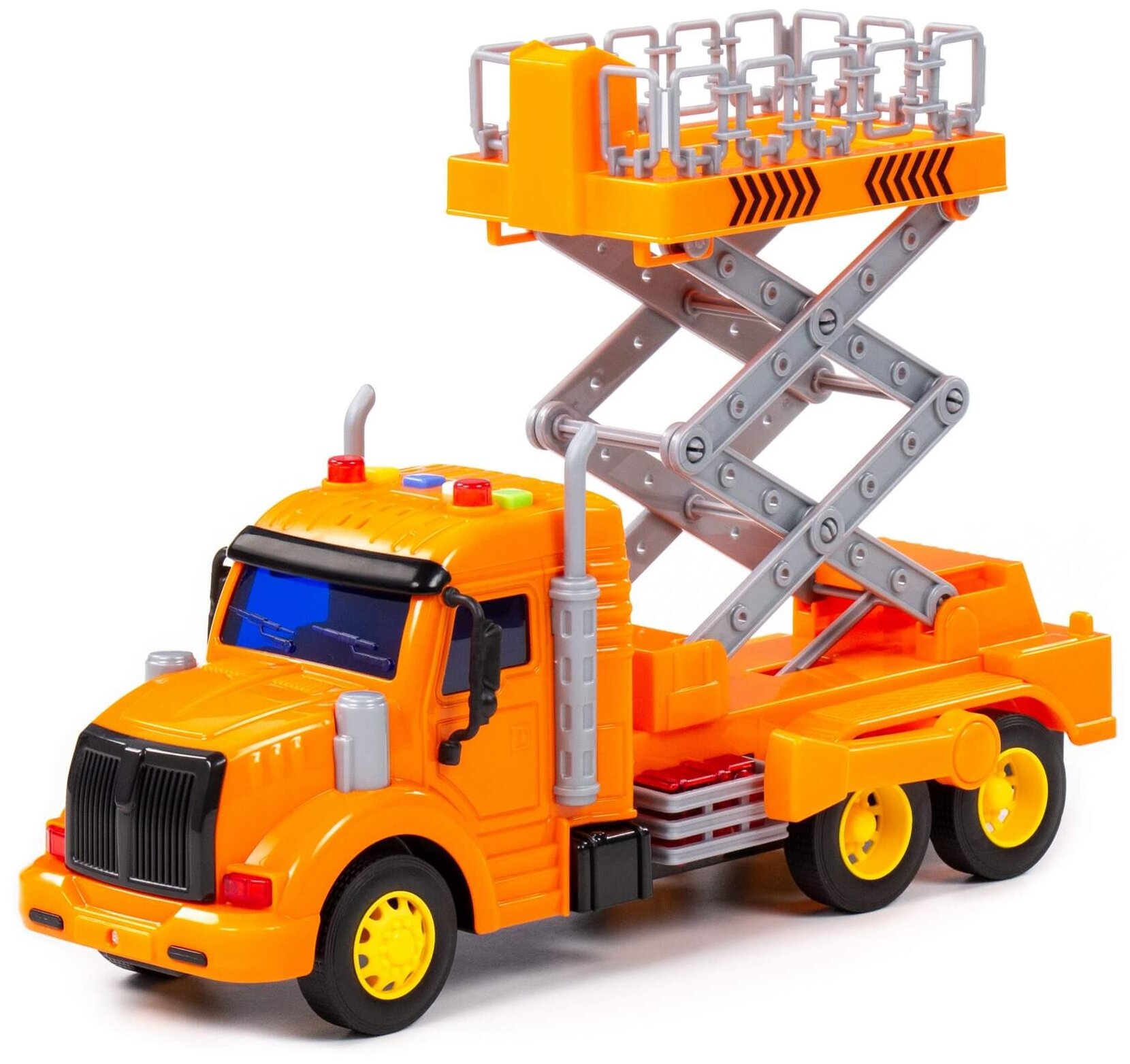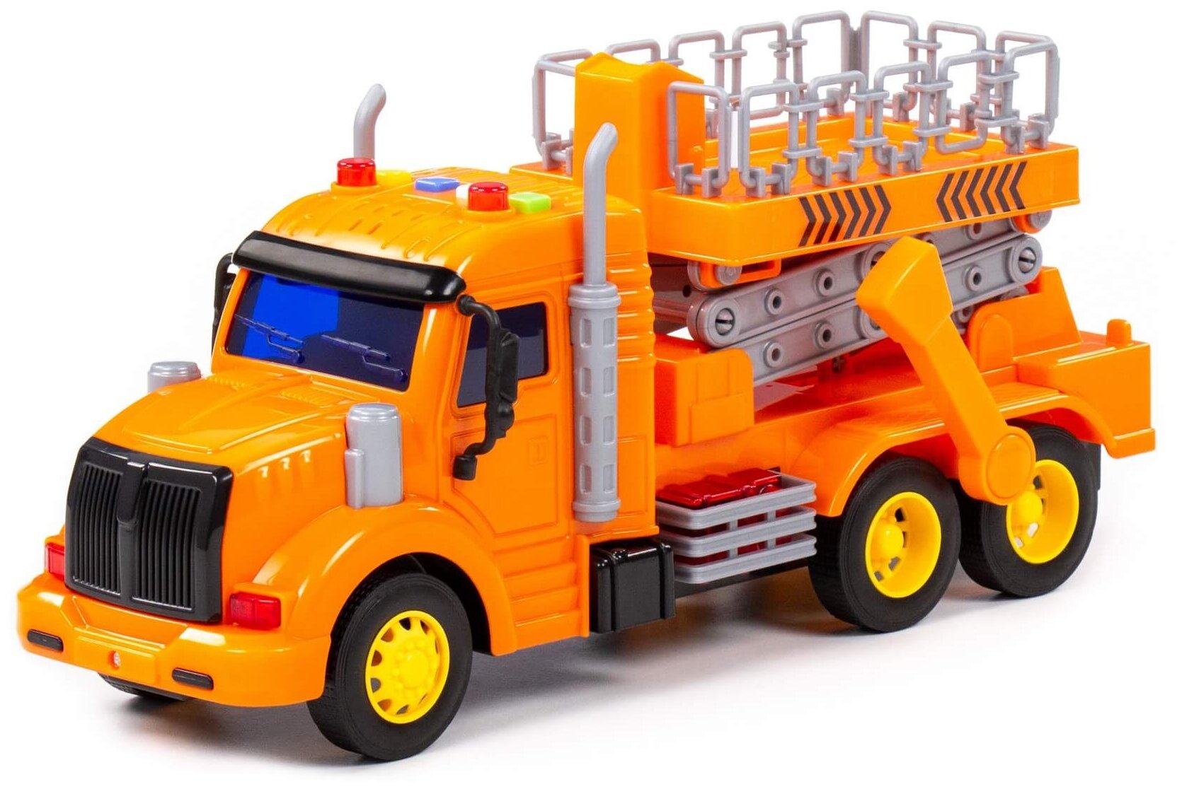 Купить Машина автовышка игрушка автоподъёмник Полесье Профи 29,8 см (инерция, звук, свет)-оранжевый