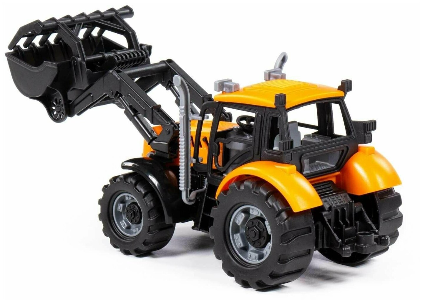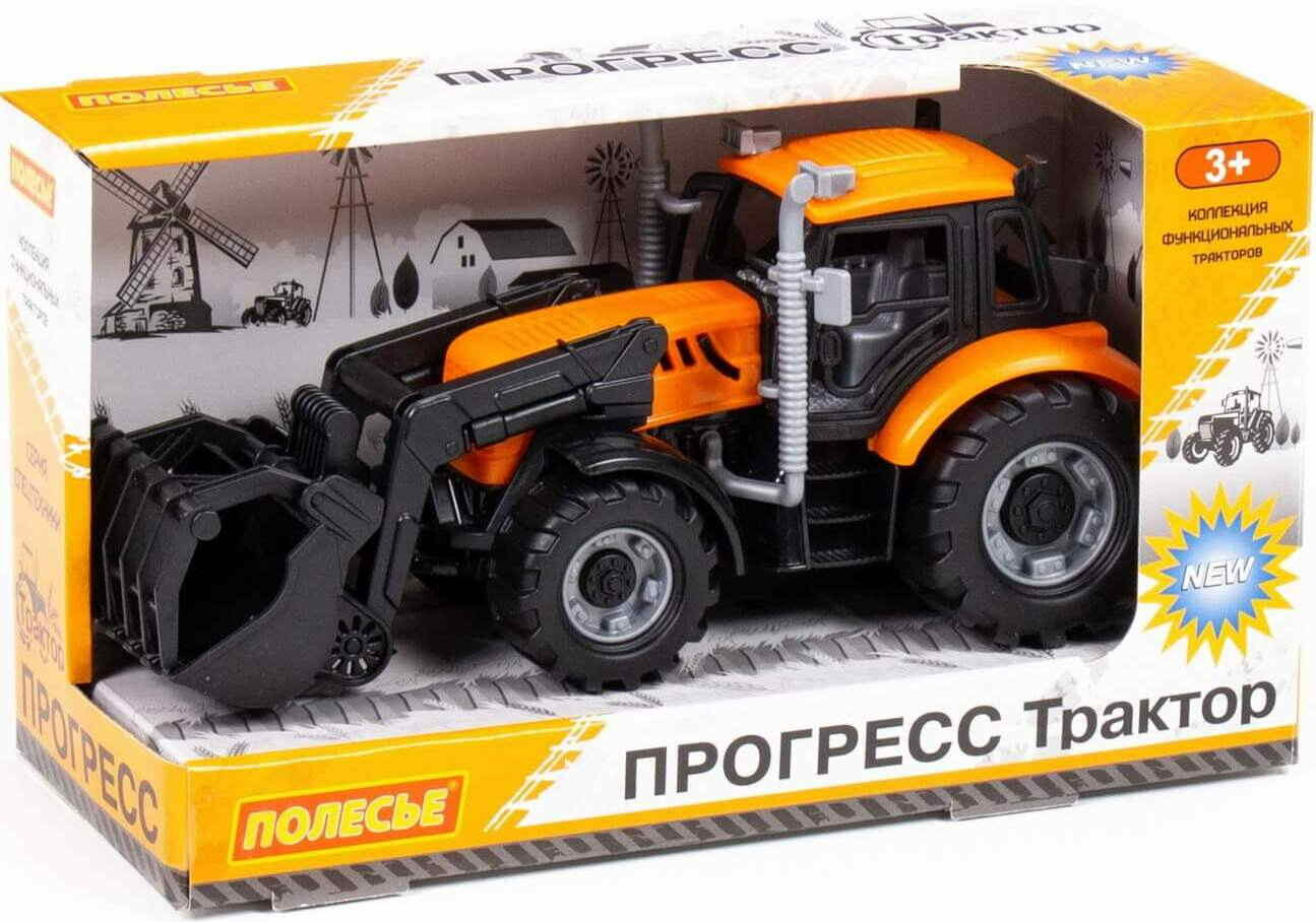Инерционный сельскохозяйственный трактор-погрузчик 24 см с захватом "Прогресс" / Полесье оранжевый (в коробке) интересное:
