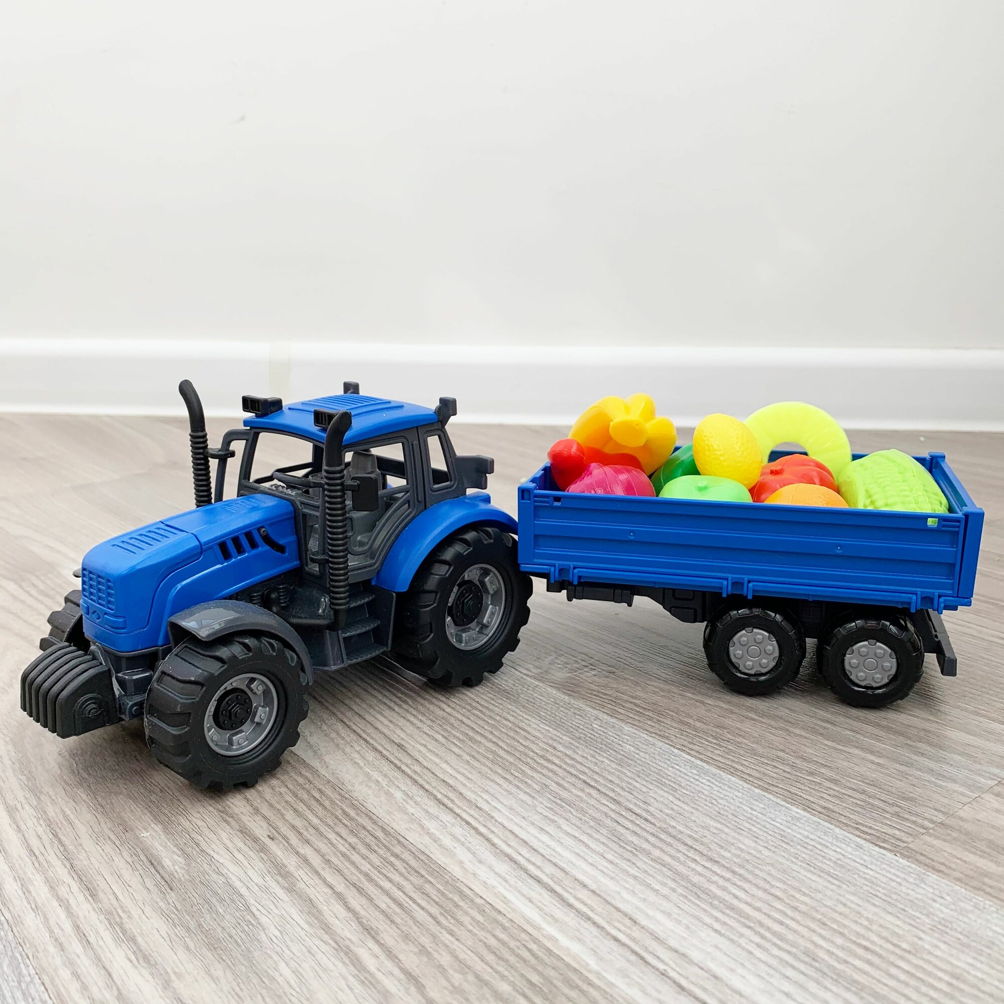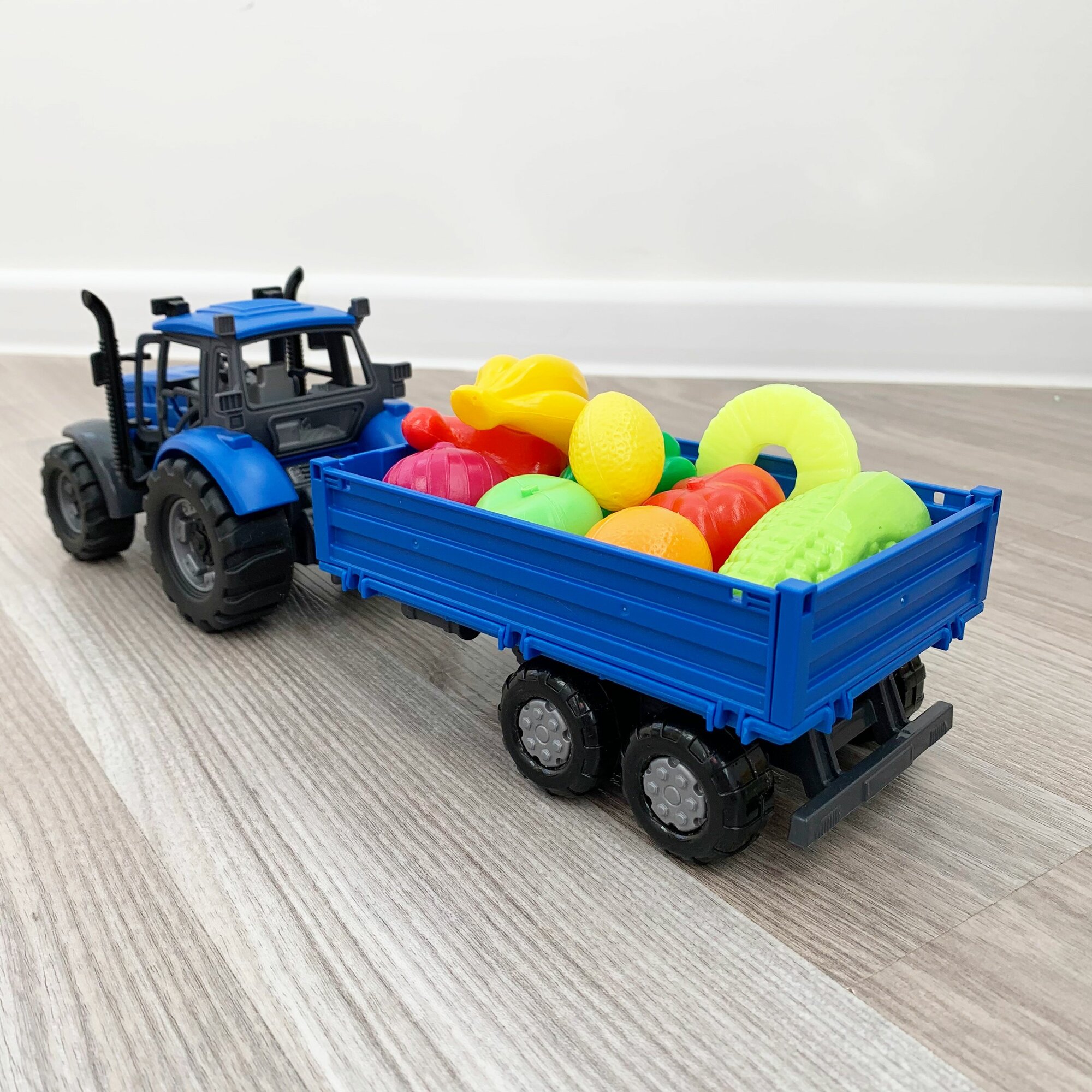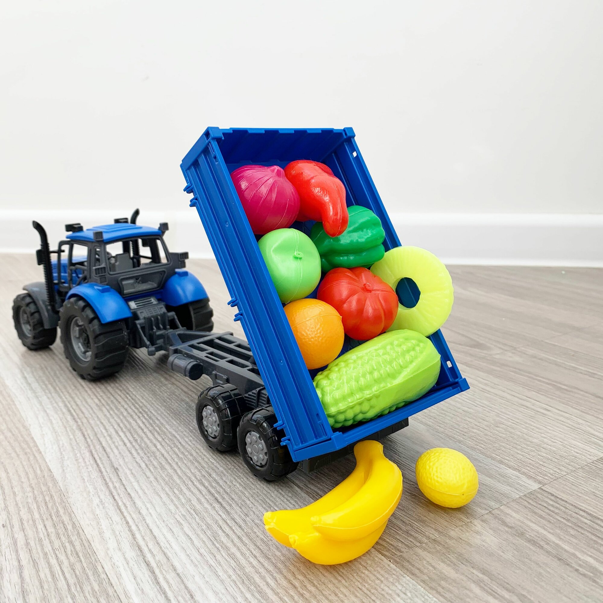 Инерционный трактор с бортовым прицепом и 10-ю мини овощами и фруктами / Полесье интересное: