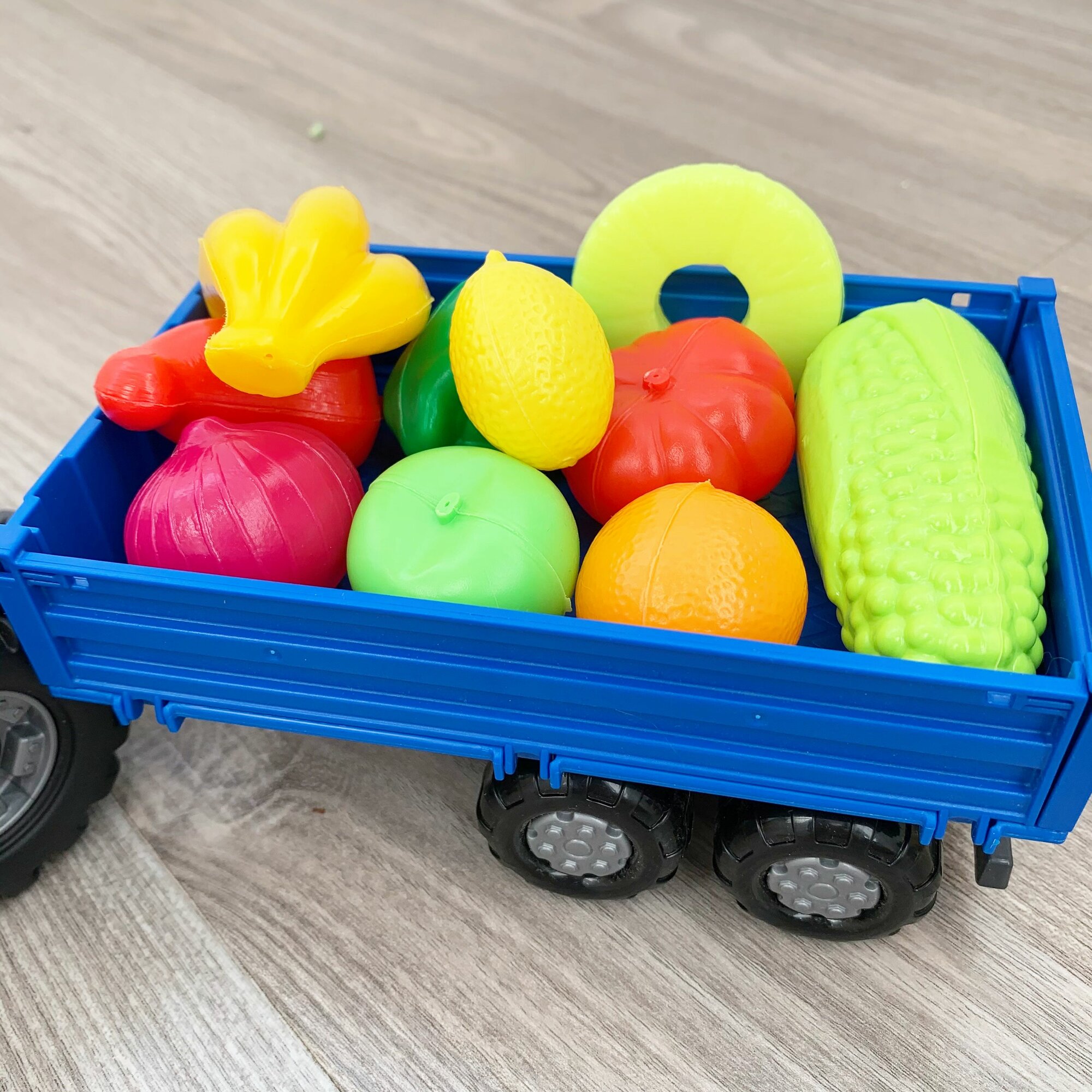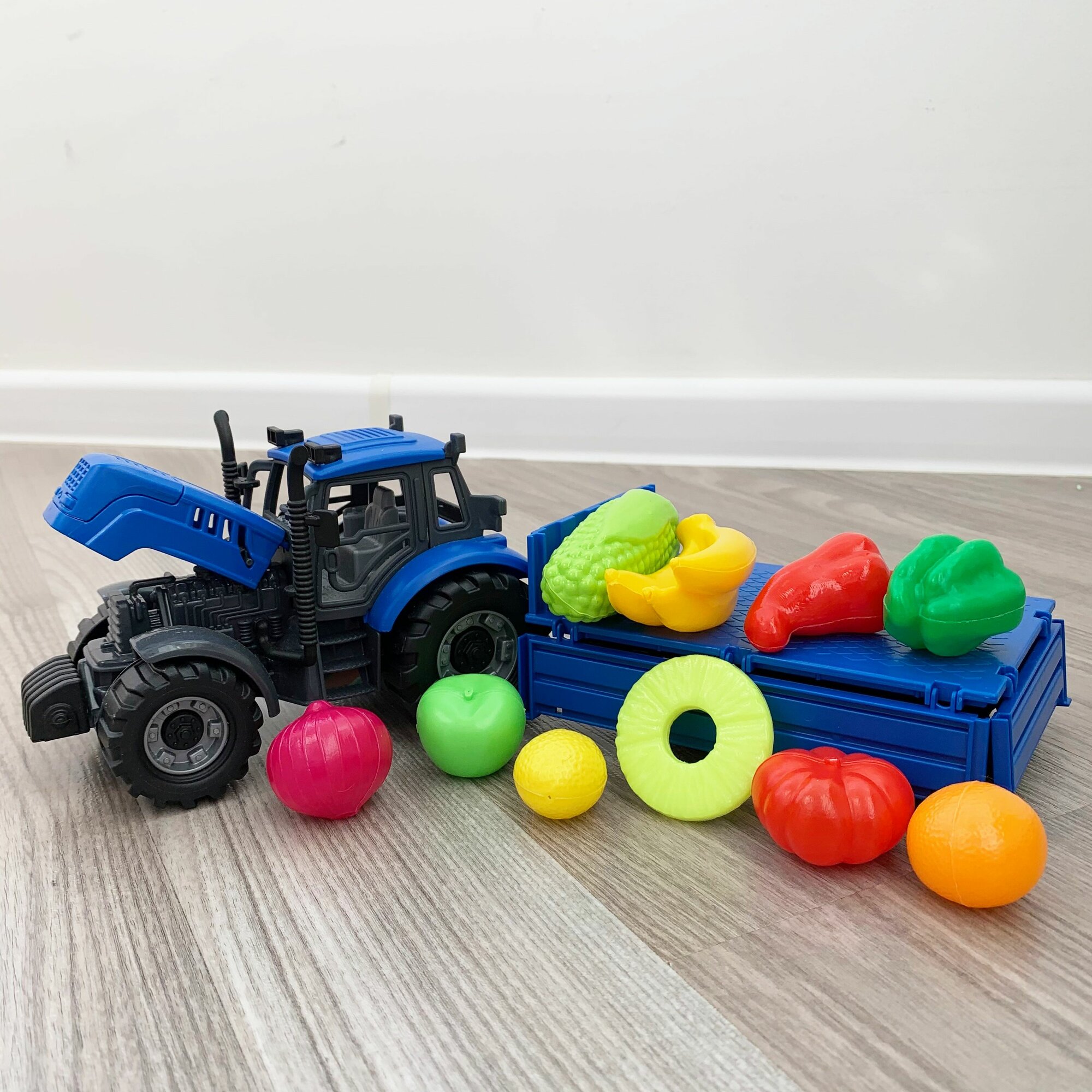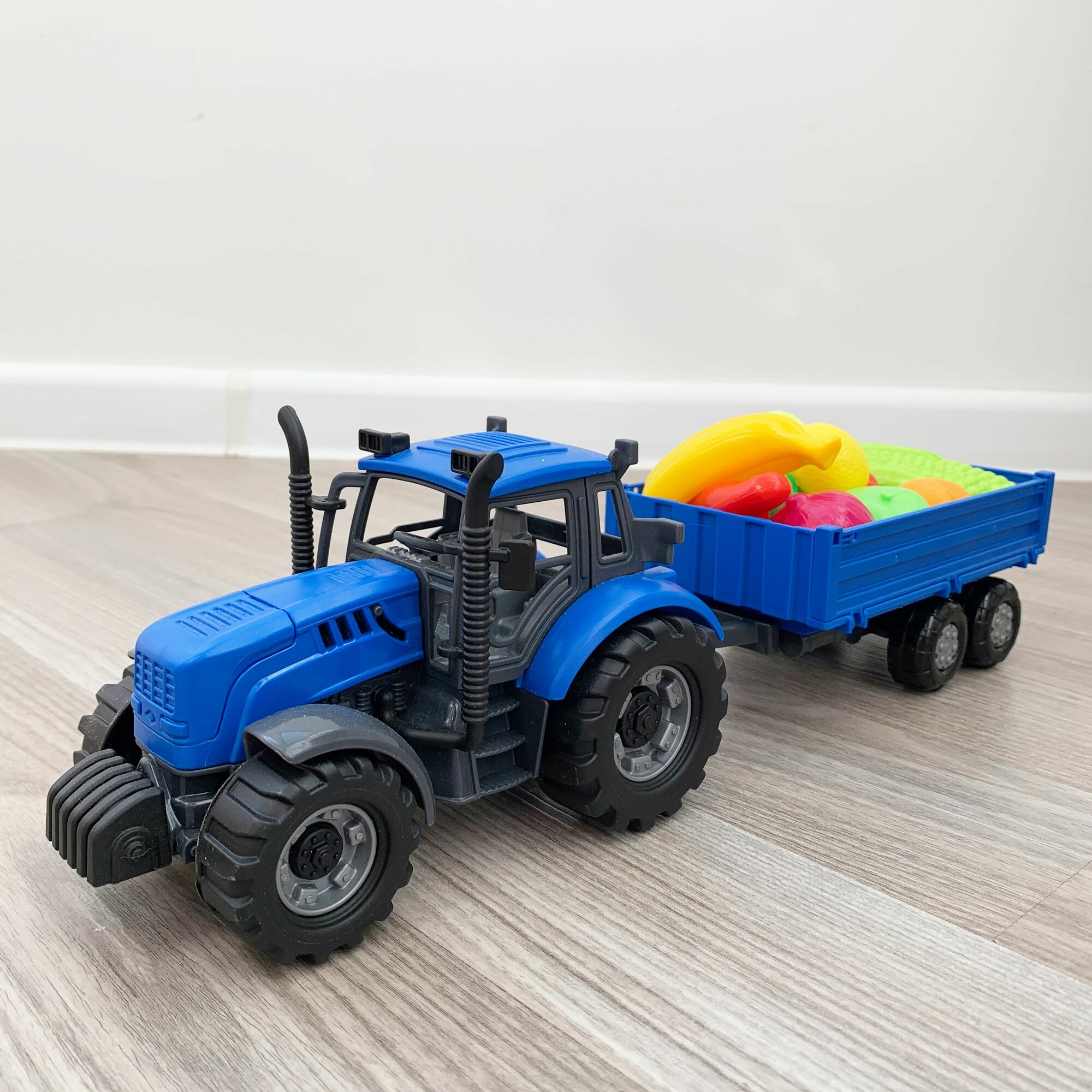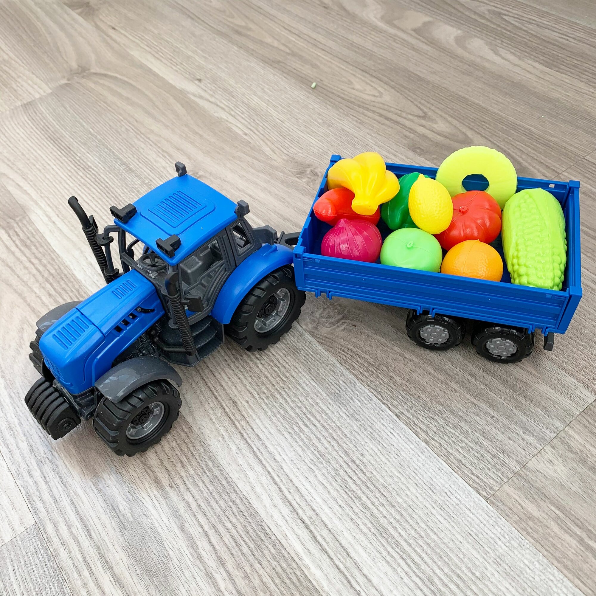 Инерционный трактор с бортовым прицепом и 10-ю мини овощами и фруктами / Полесье интересное: